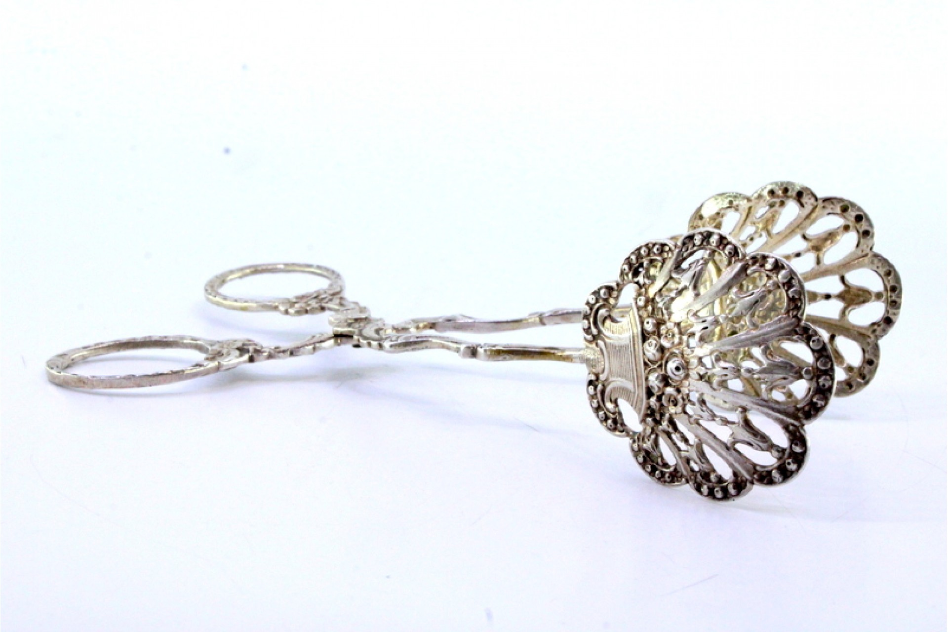 • Descrição: Pinça para salada ou pão em prata recortada nas conchas e hastes relevadas.