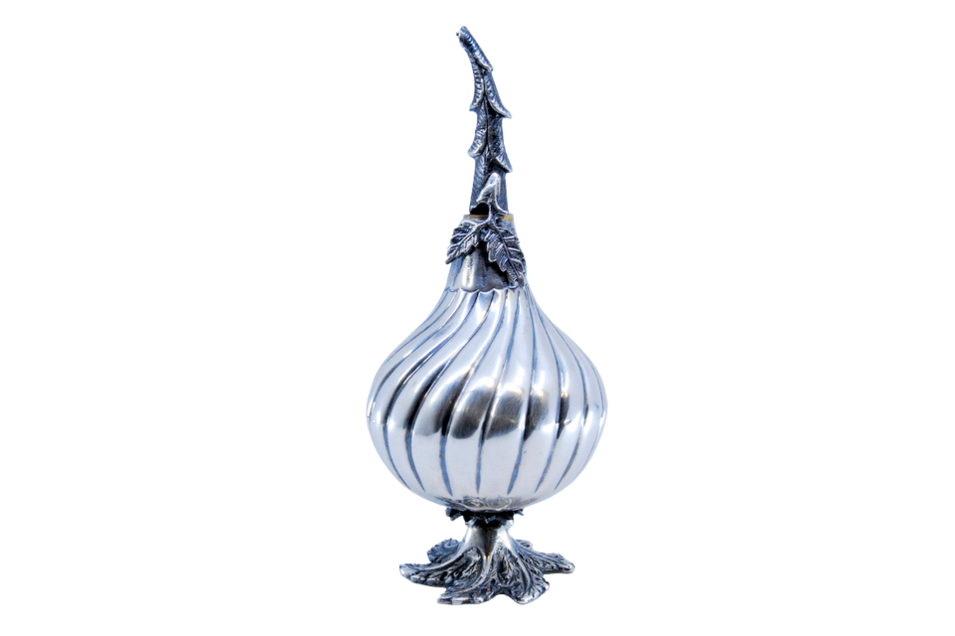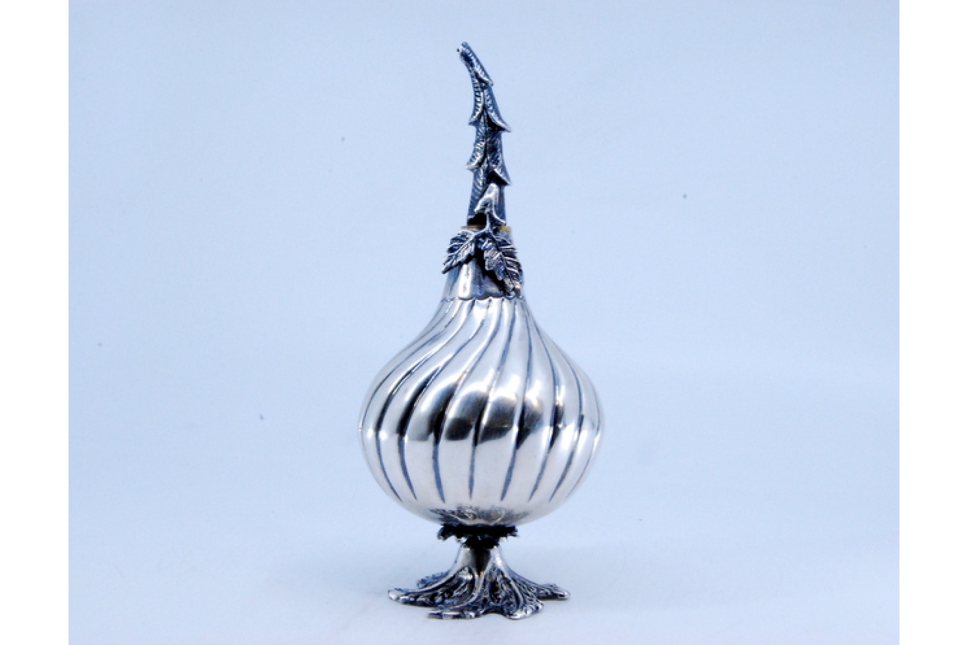• Descrição: Piveteiro em prata espiralada para água das rosas.