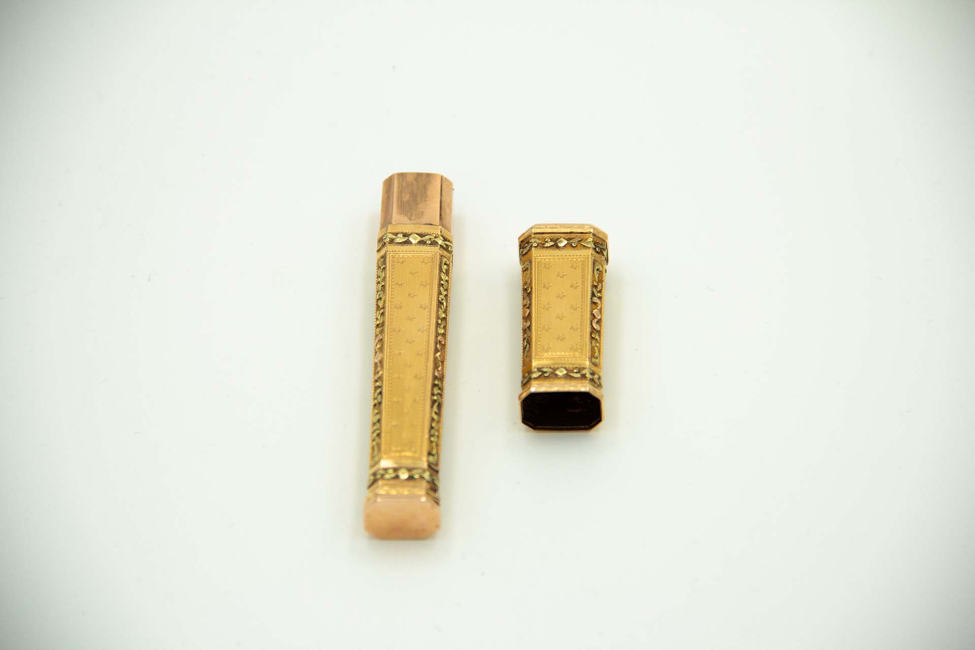 Porta-Lacre em de ouro amarelo guilhochado, ricamente definido com esrelas cinti