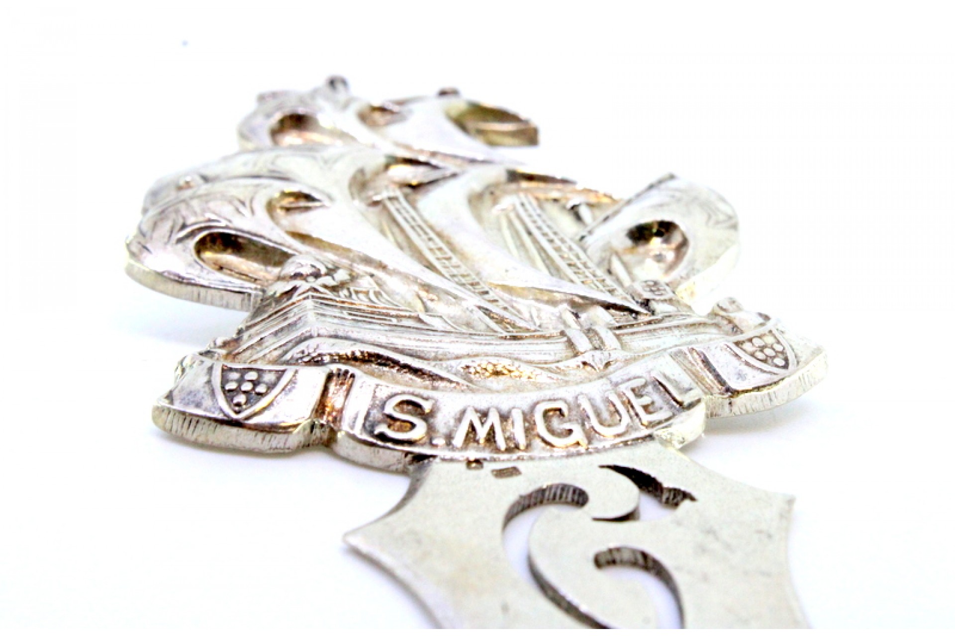 • Descrição: Abre cartas em prata com recortes na lâmina e caravela S.Miguel no cabo.