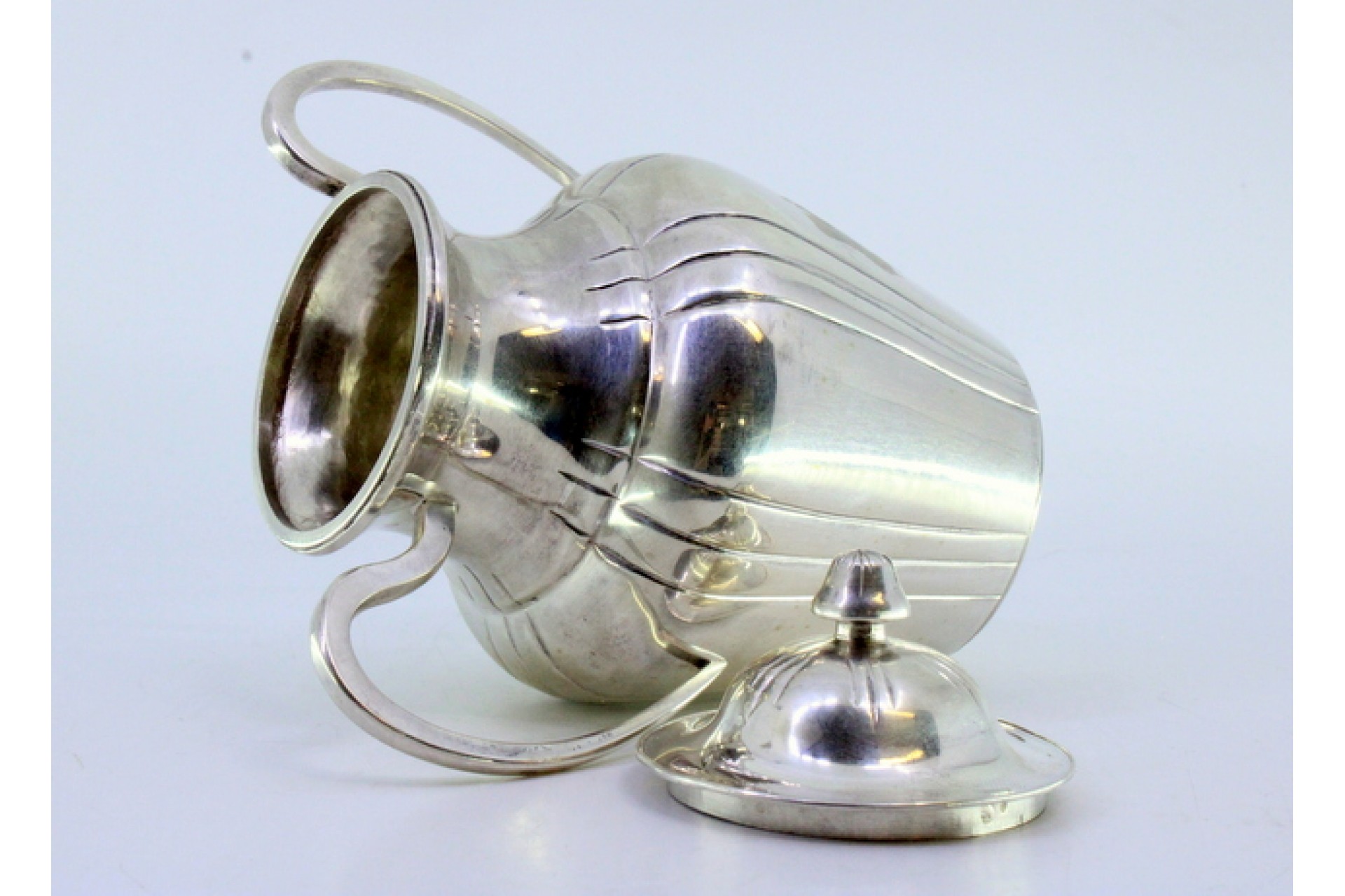 • Descrição: Açucareiro em prata gomada de asas lisas e pomo na tampa.
