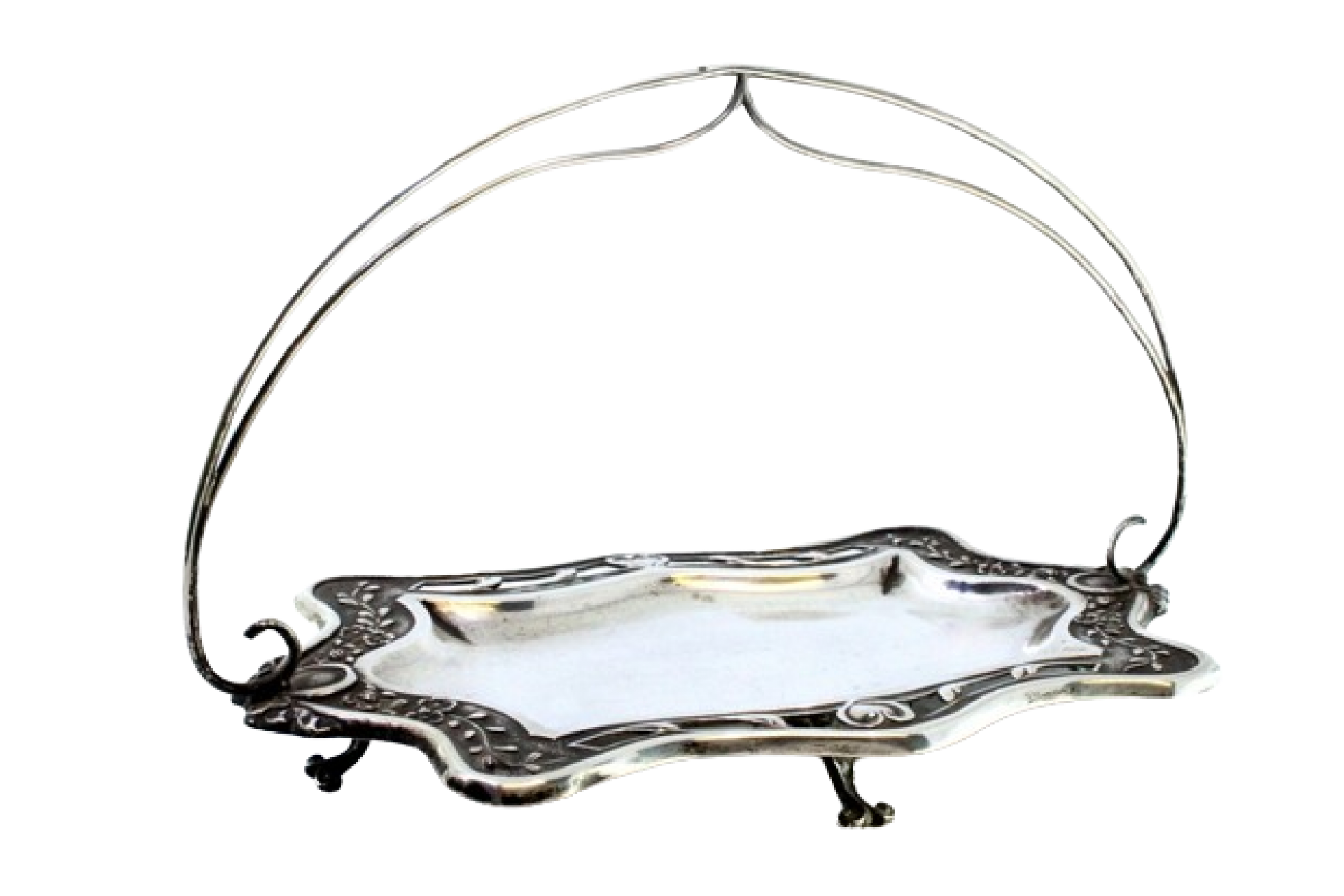 • Descrição: Aneleira em prata recortada com pega dupla, motivos florais relevados e assente em quatro pés recortados.