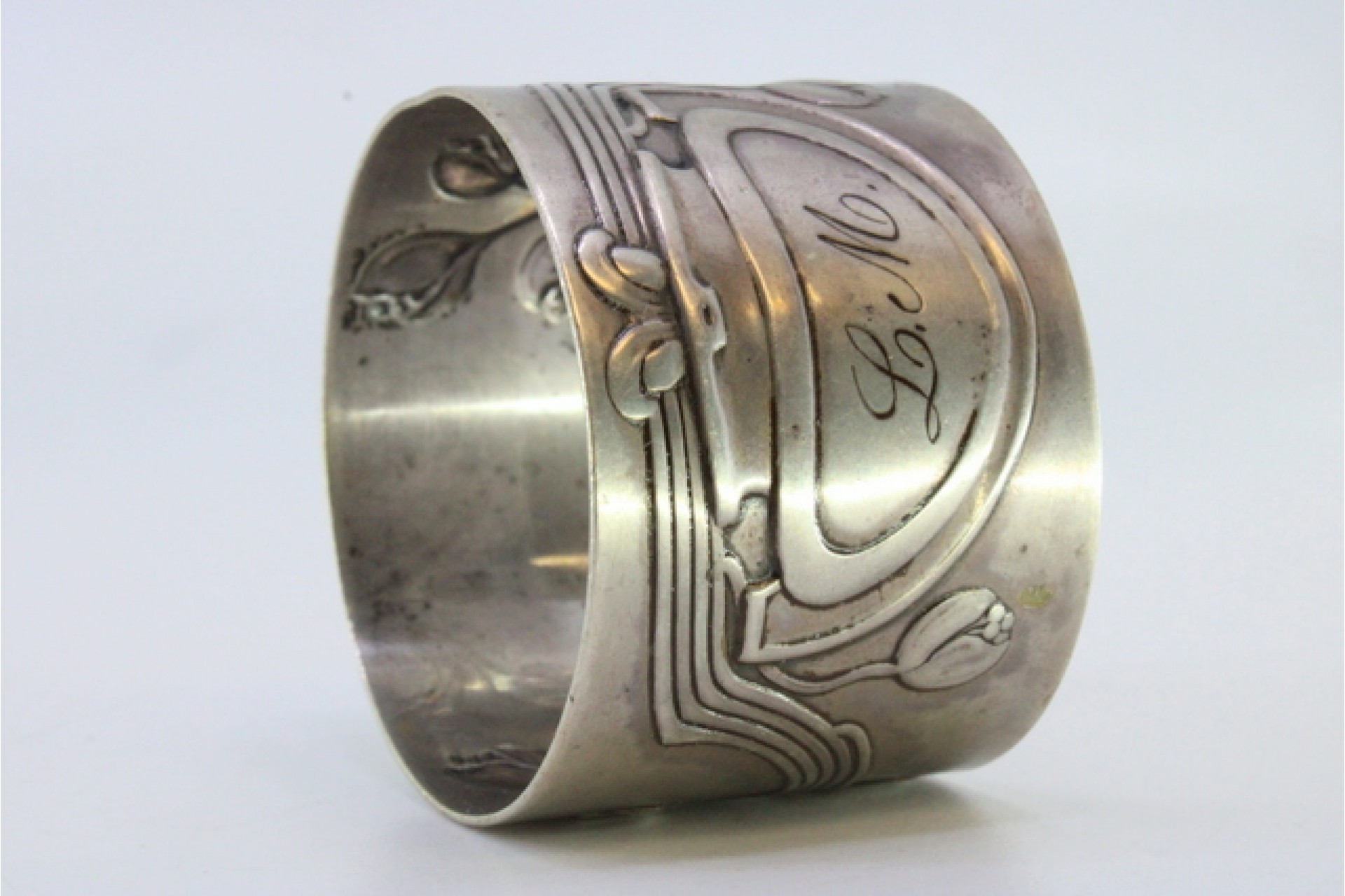 Etiquetas: Argola de guardanapo, Prata, Relevos, Letras
