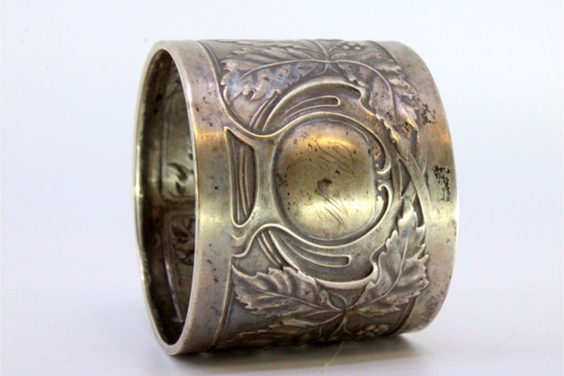 • Descrição: Argola de guardanapo em prata com relevos florais envolvendo cartela para monograma.