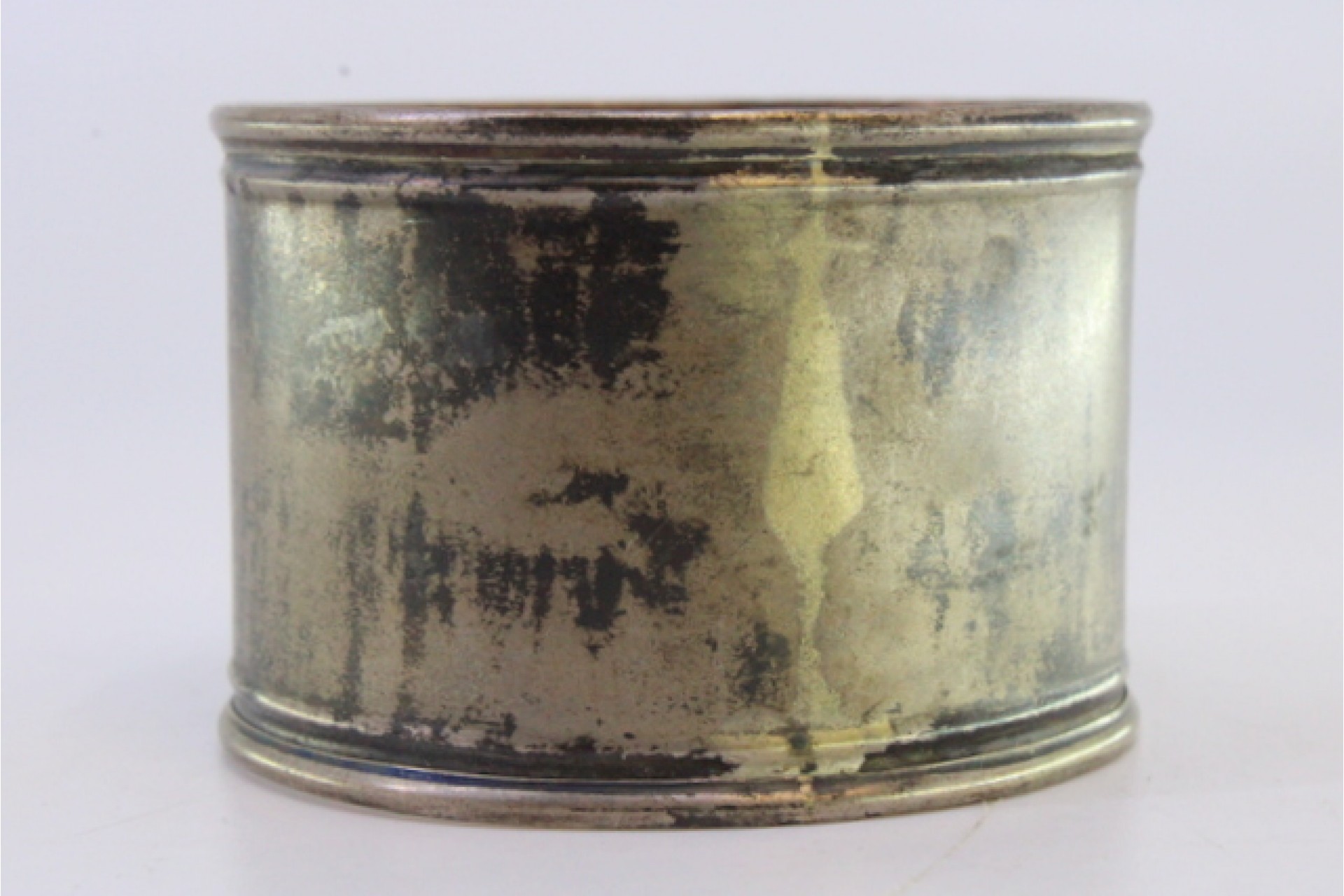 • Descrição: Argola de guardanapo em prata com motivos florais relevados envolvendo cartela para monograma.