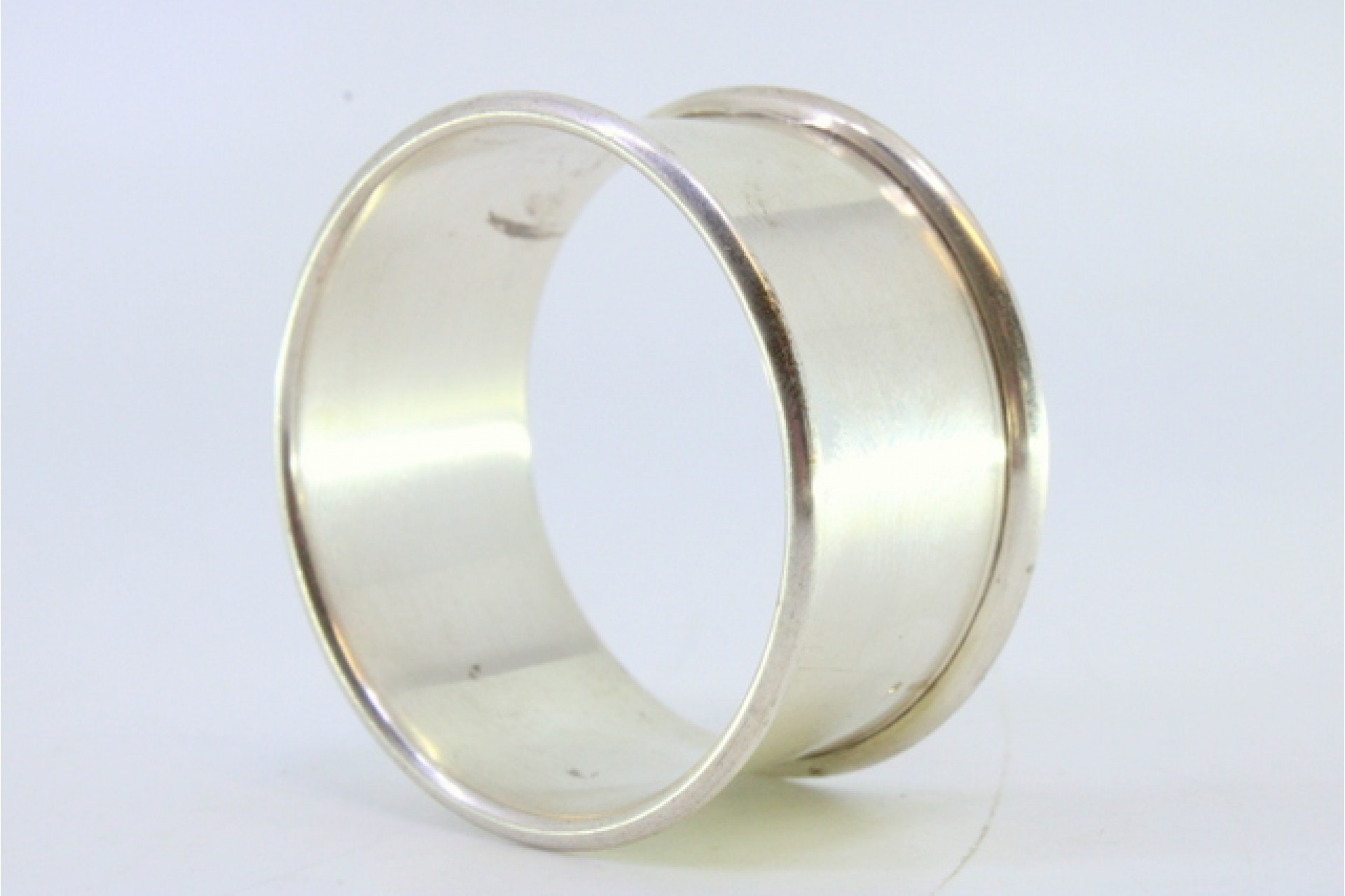 • Descrição: Argola de guardanapo em prata lisa com frisos na envolvência