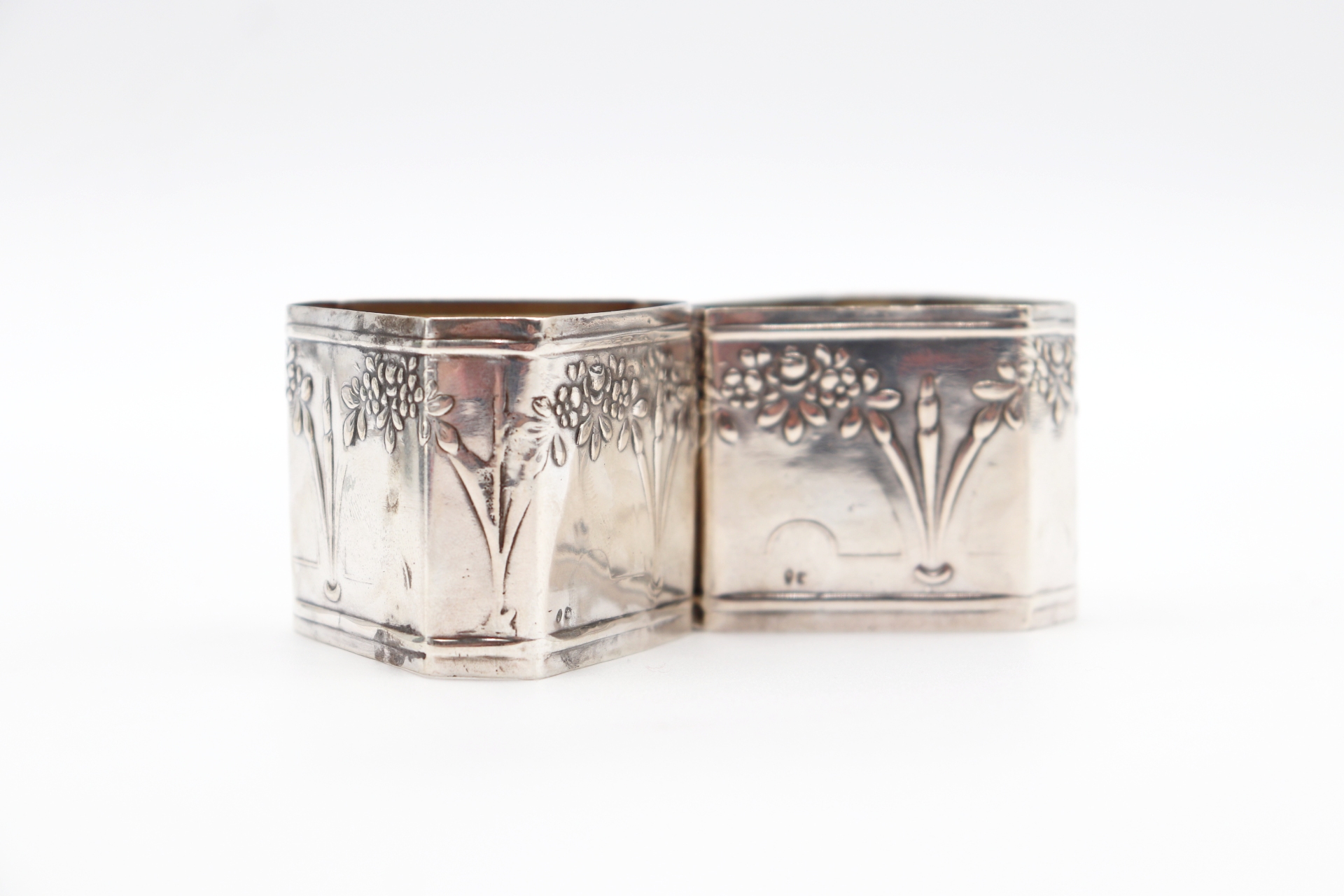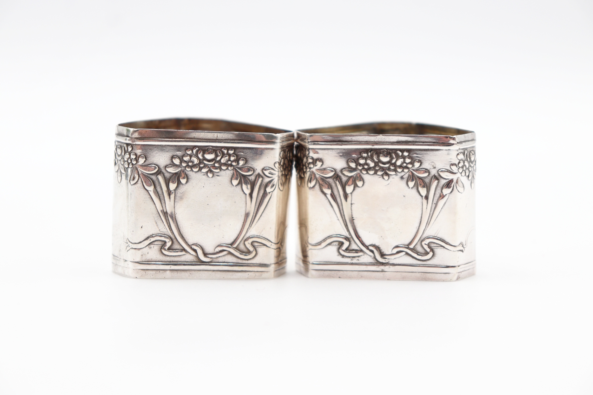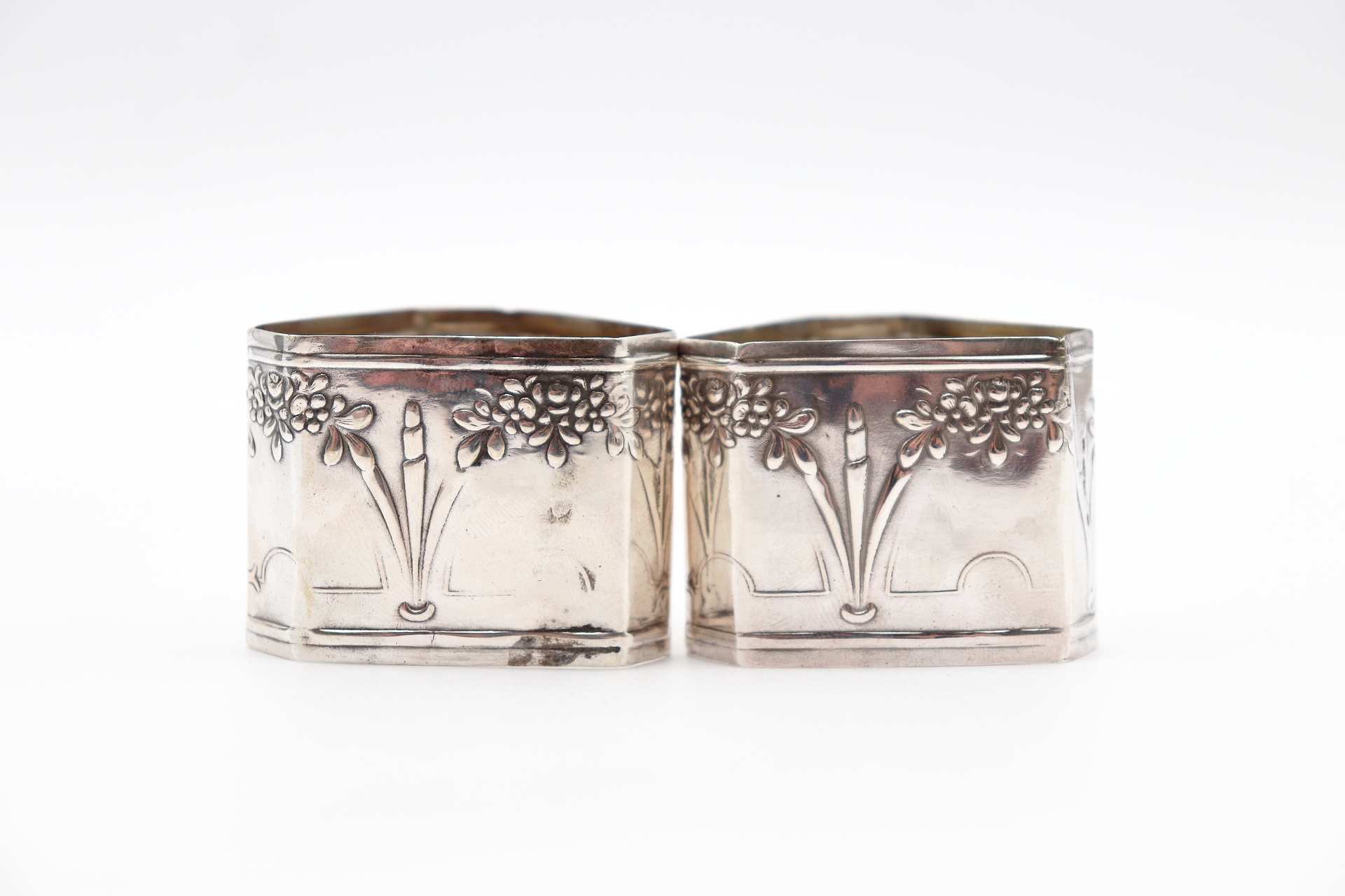 Par de argolas de guardanapo em prata com motivos vegetalistas relevados