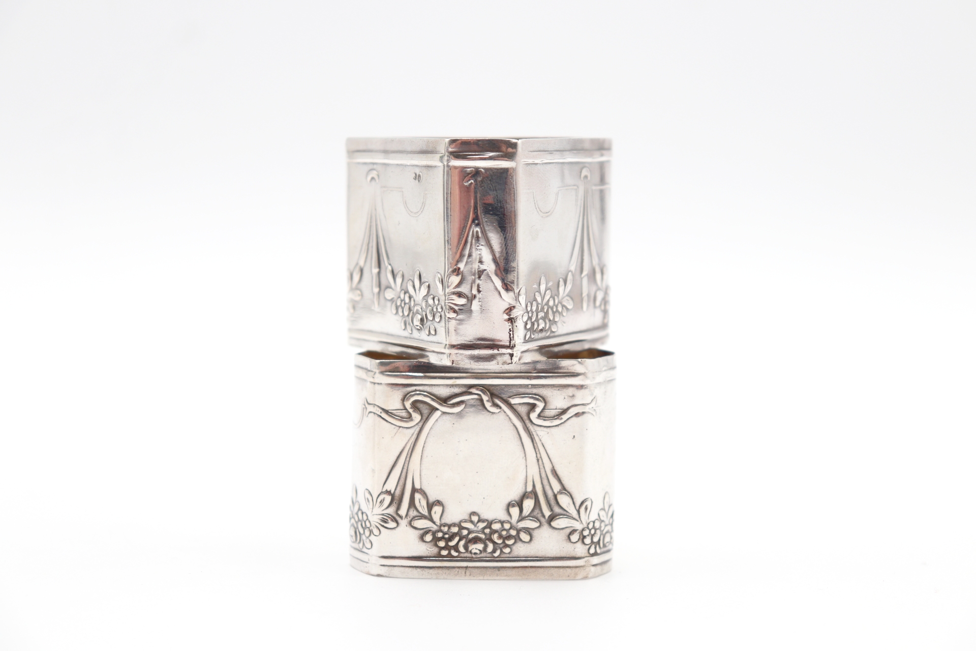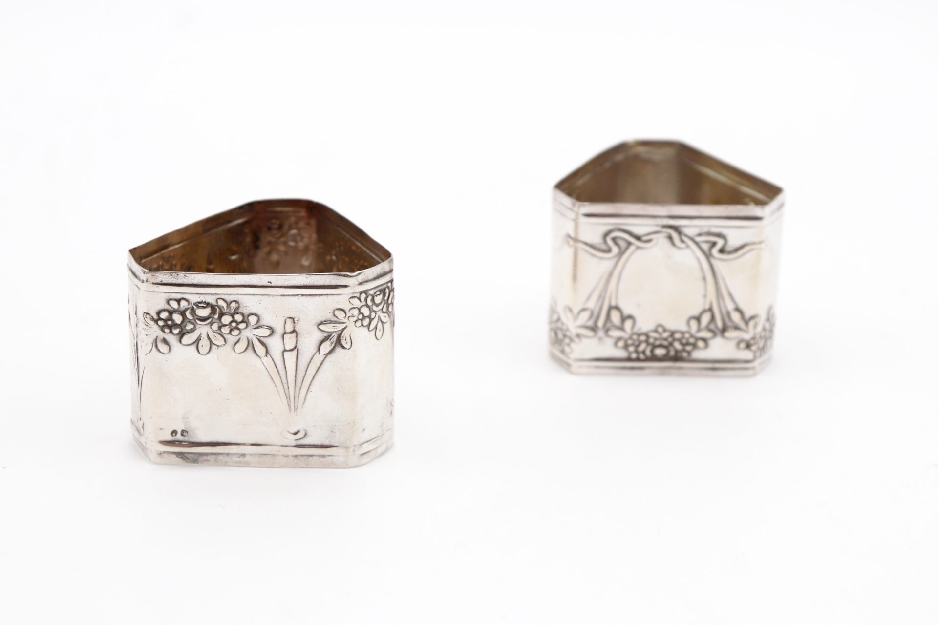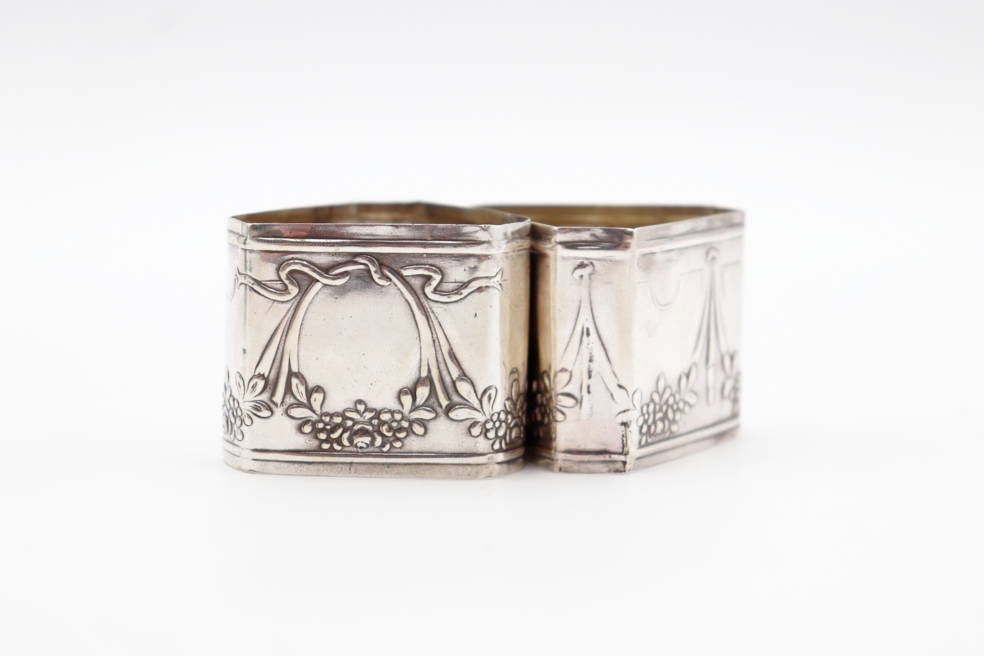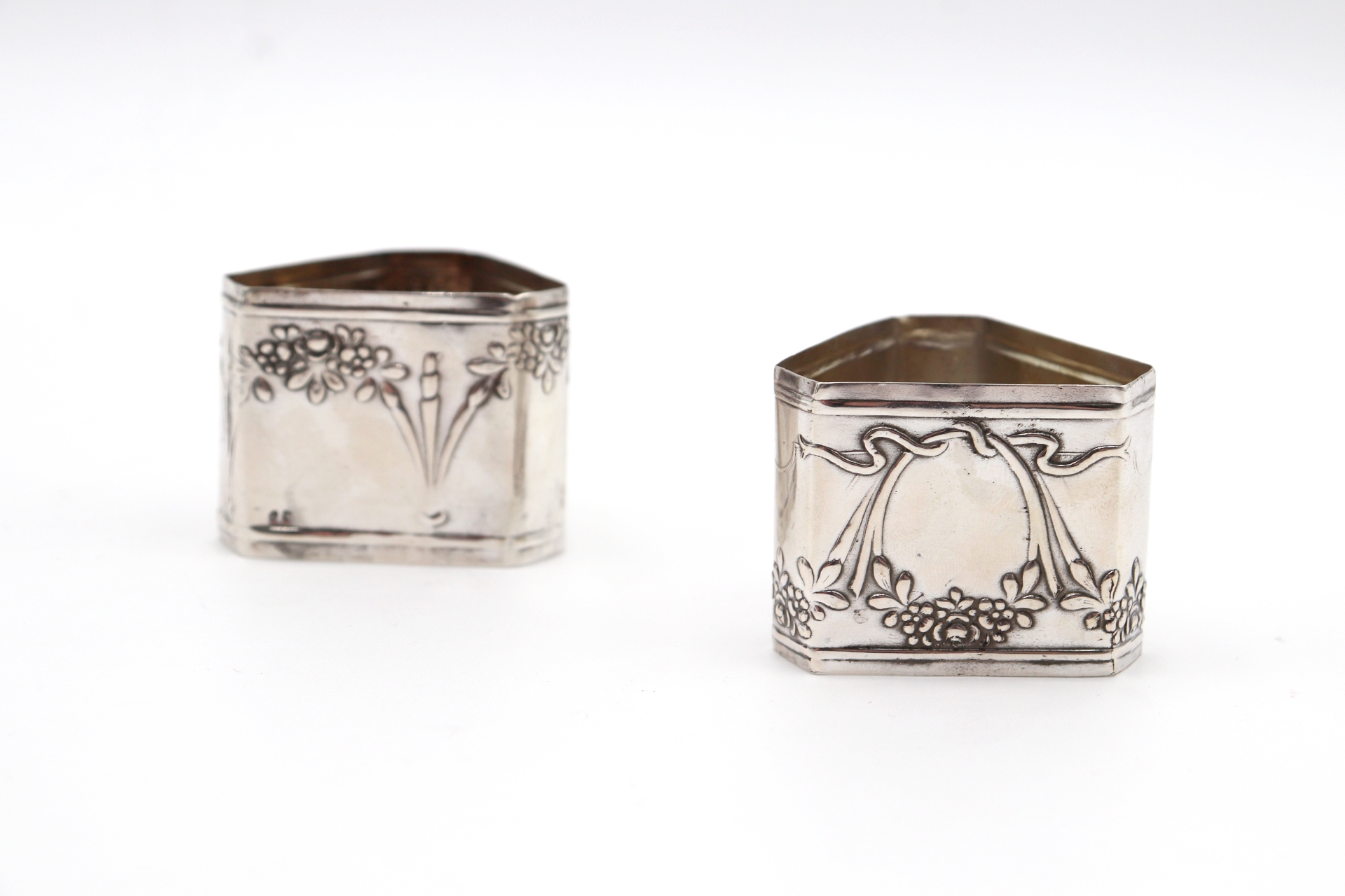 Par de argolas de guardanapo em prata com motivos vegetalistas relevados