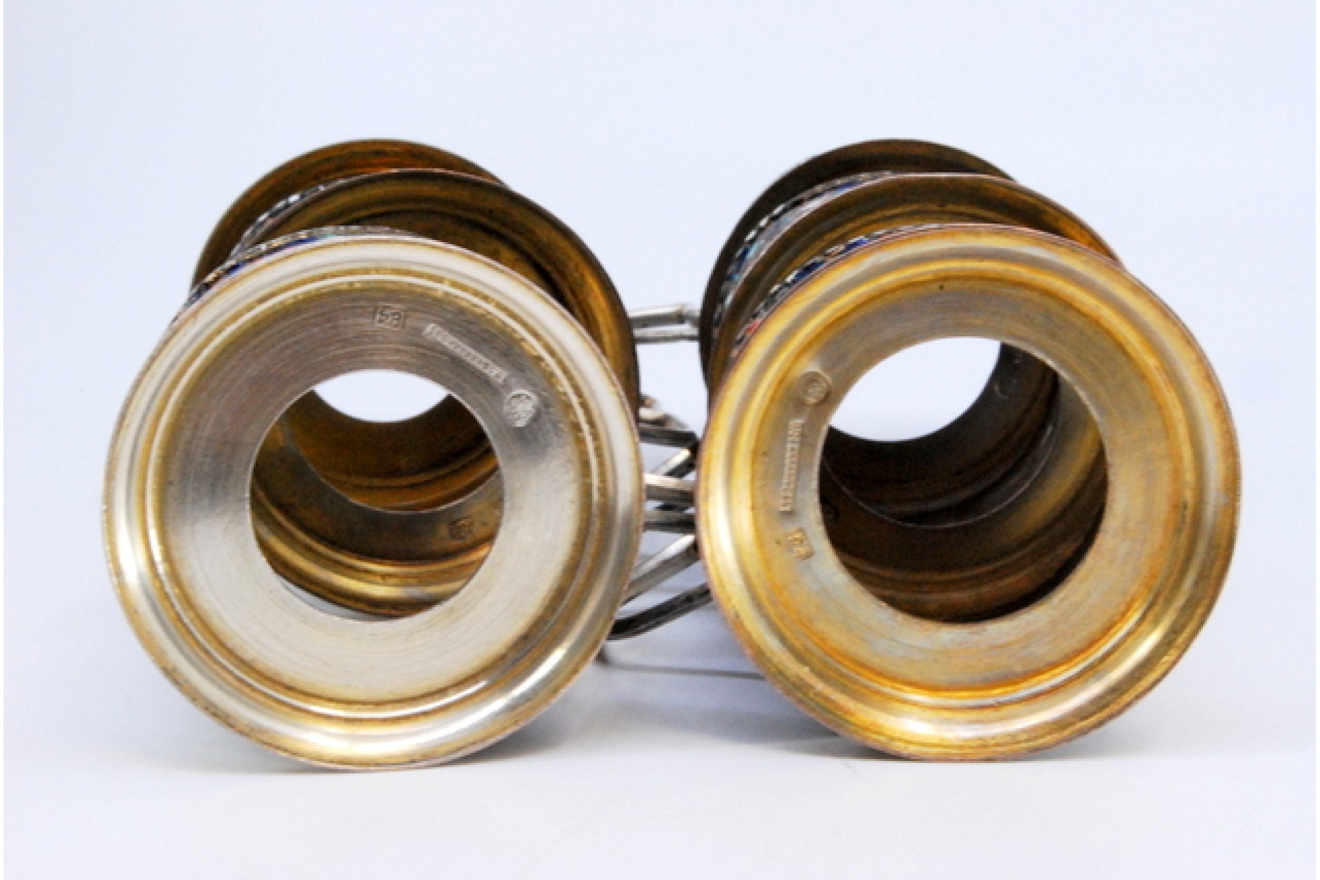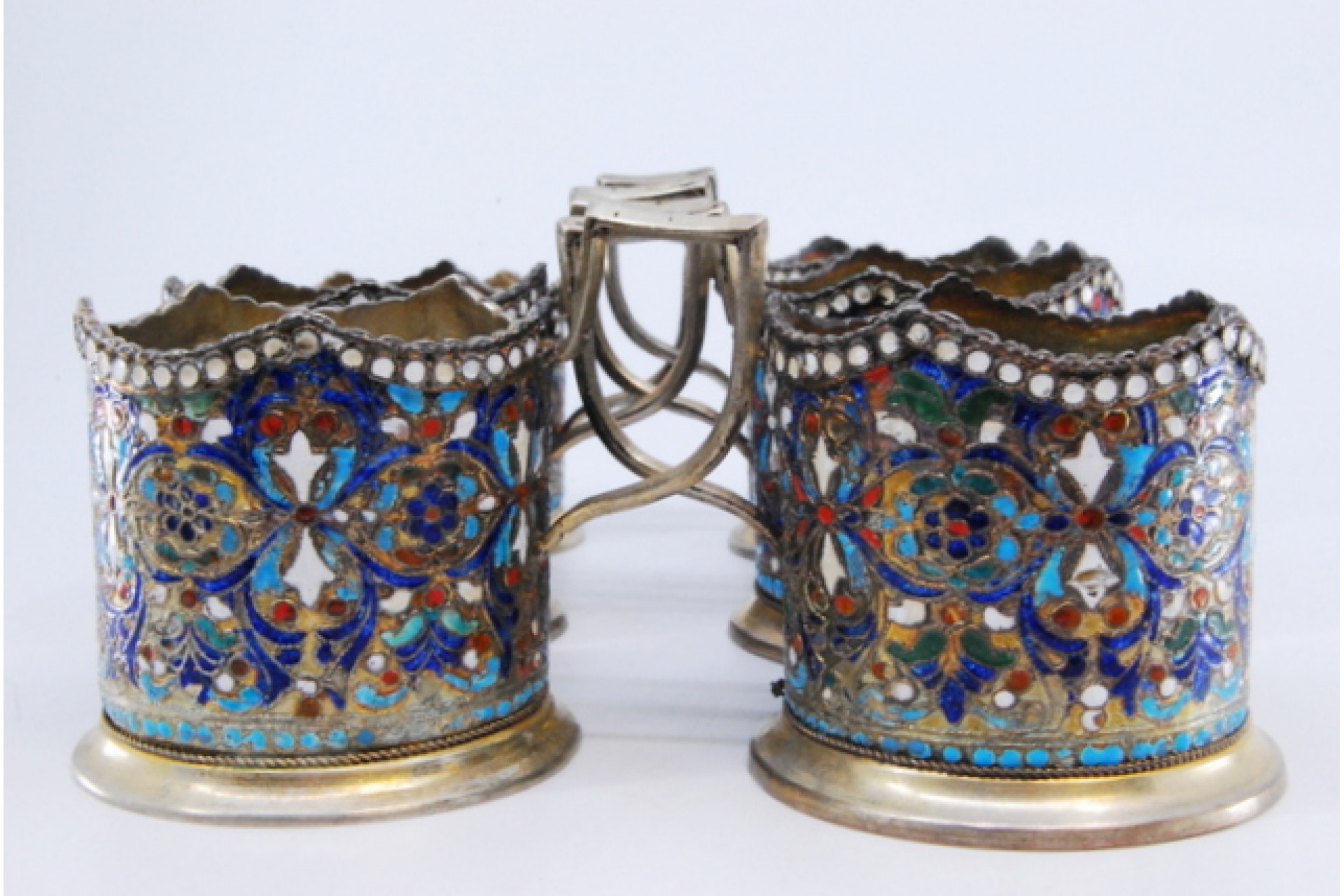 • Descrição: Conjunto de seis bases de copos em prata com esmaltes ao estilo cloissonè.