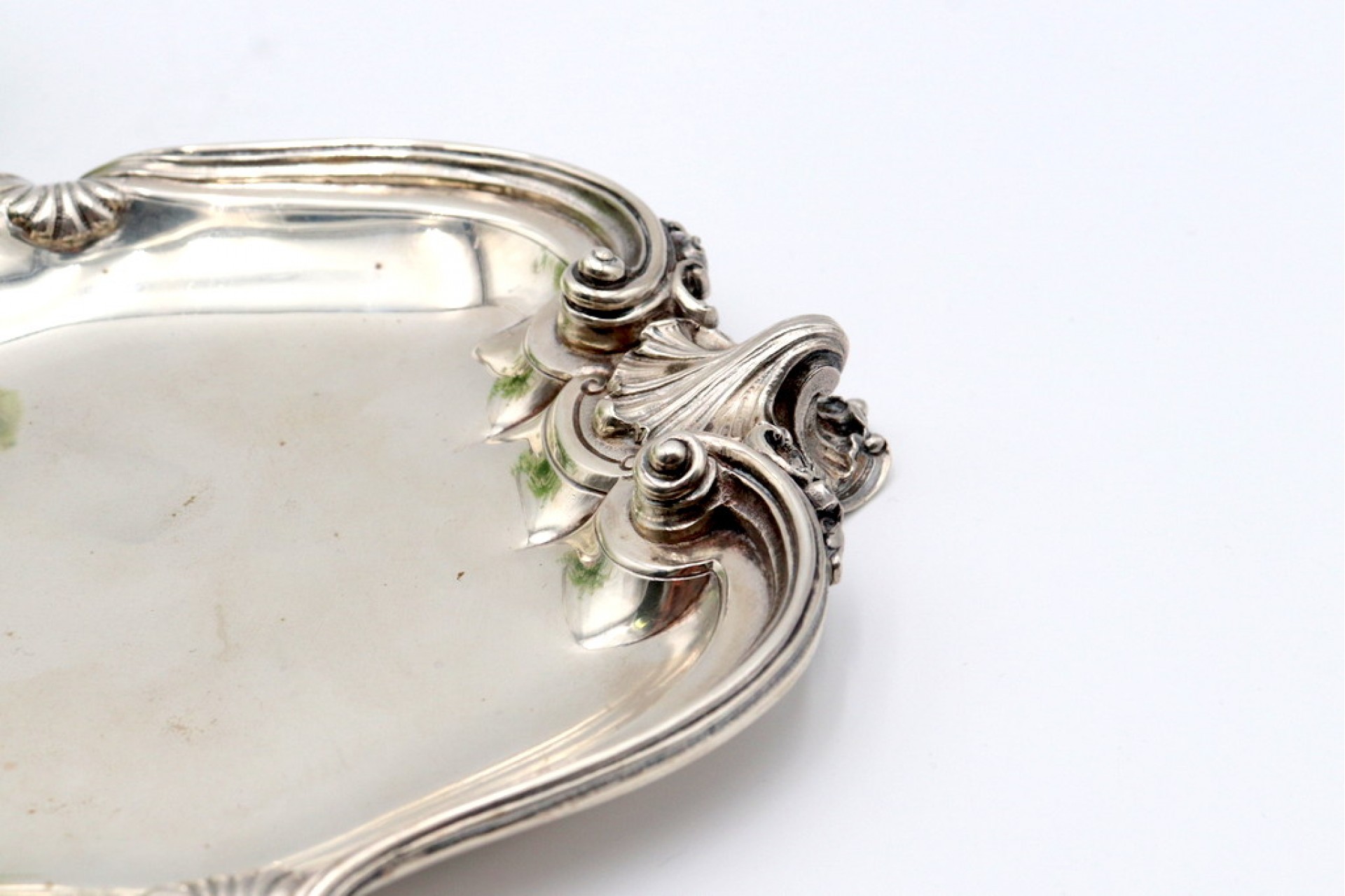 Bilheteira em prata com frisos relevados, folhas de acanto e enrolamentos