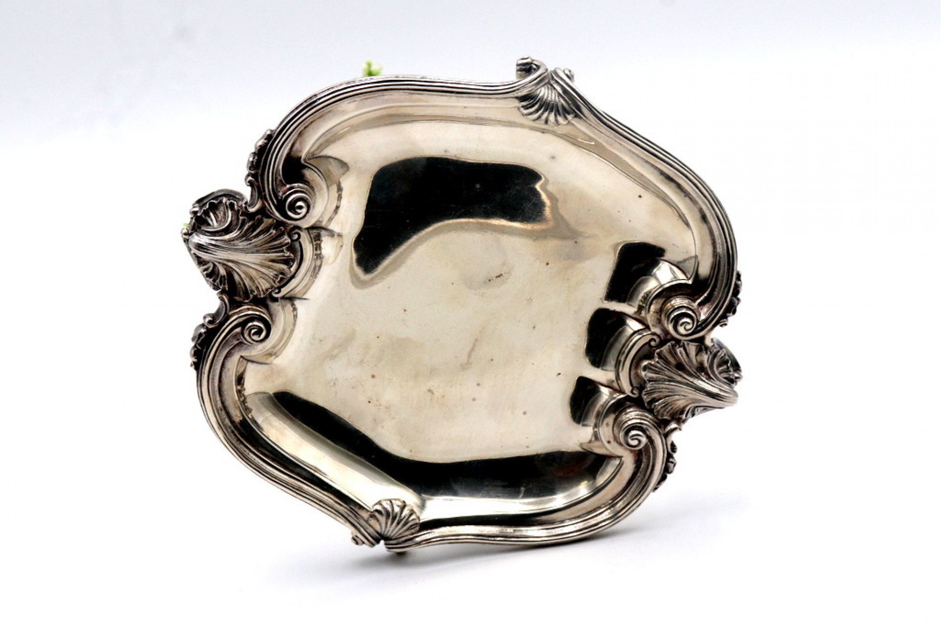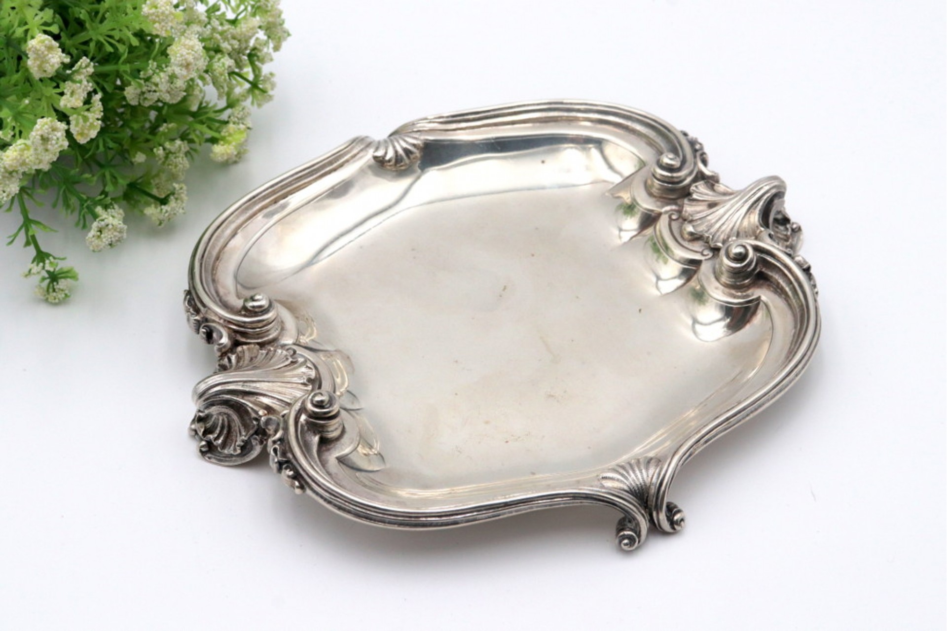• Descrição: Bilheteira em prata com frisos relevados, folhas de acanto e enrolamentos com assente em quatro pés .