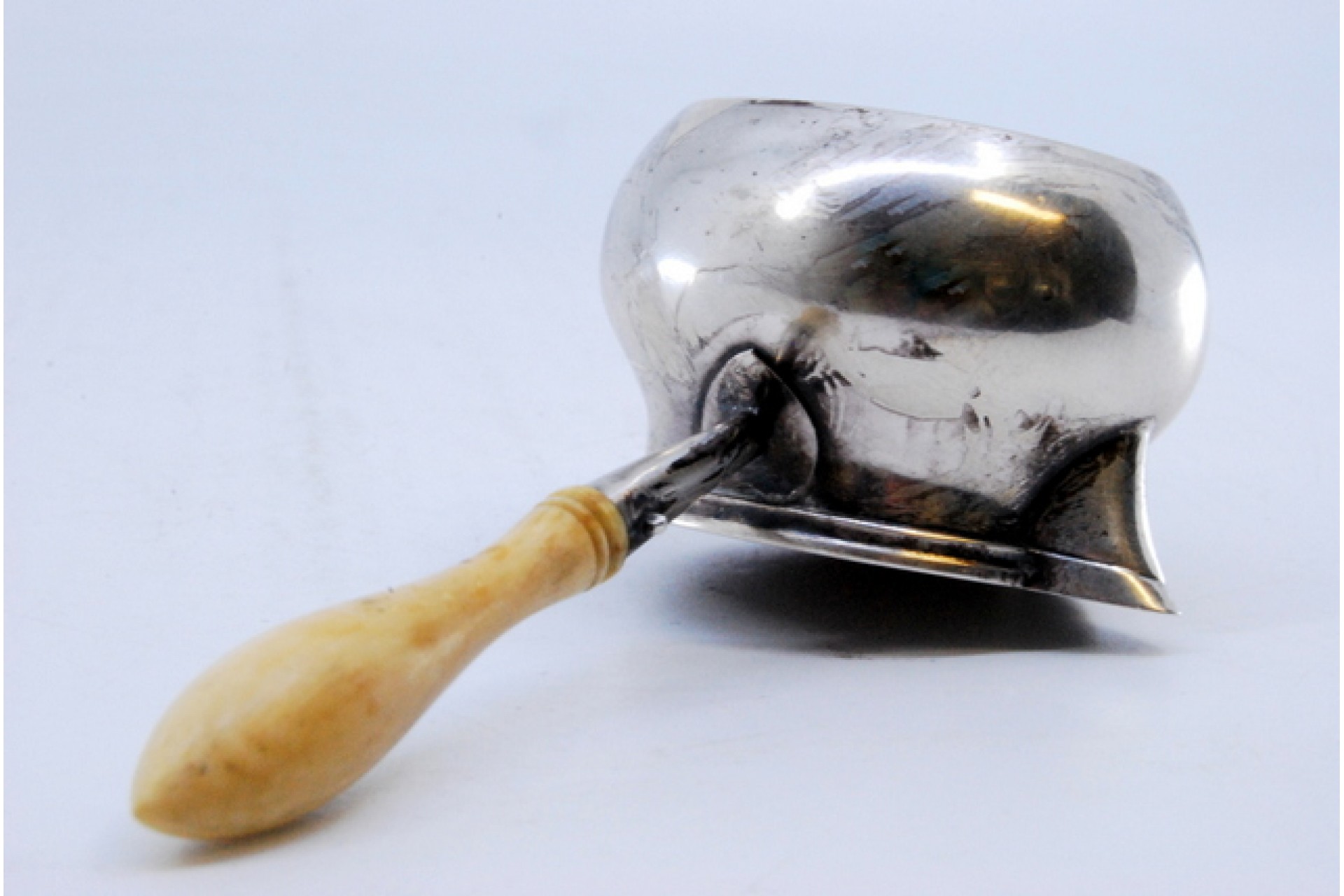 Caçarola em prata com cabo em osso.