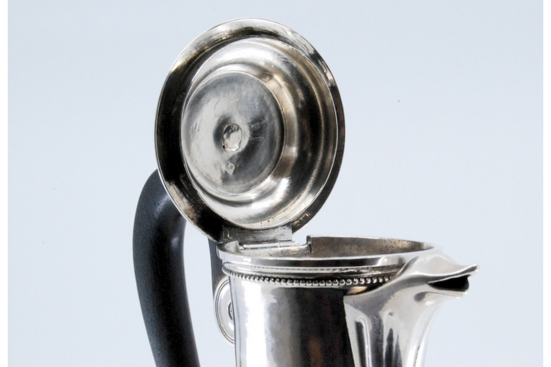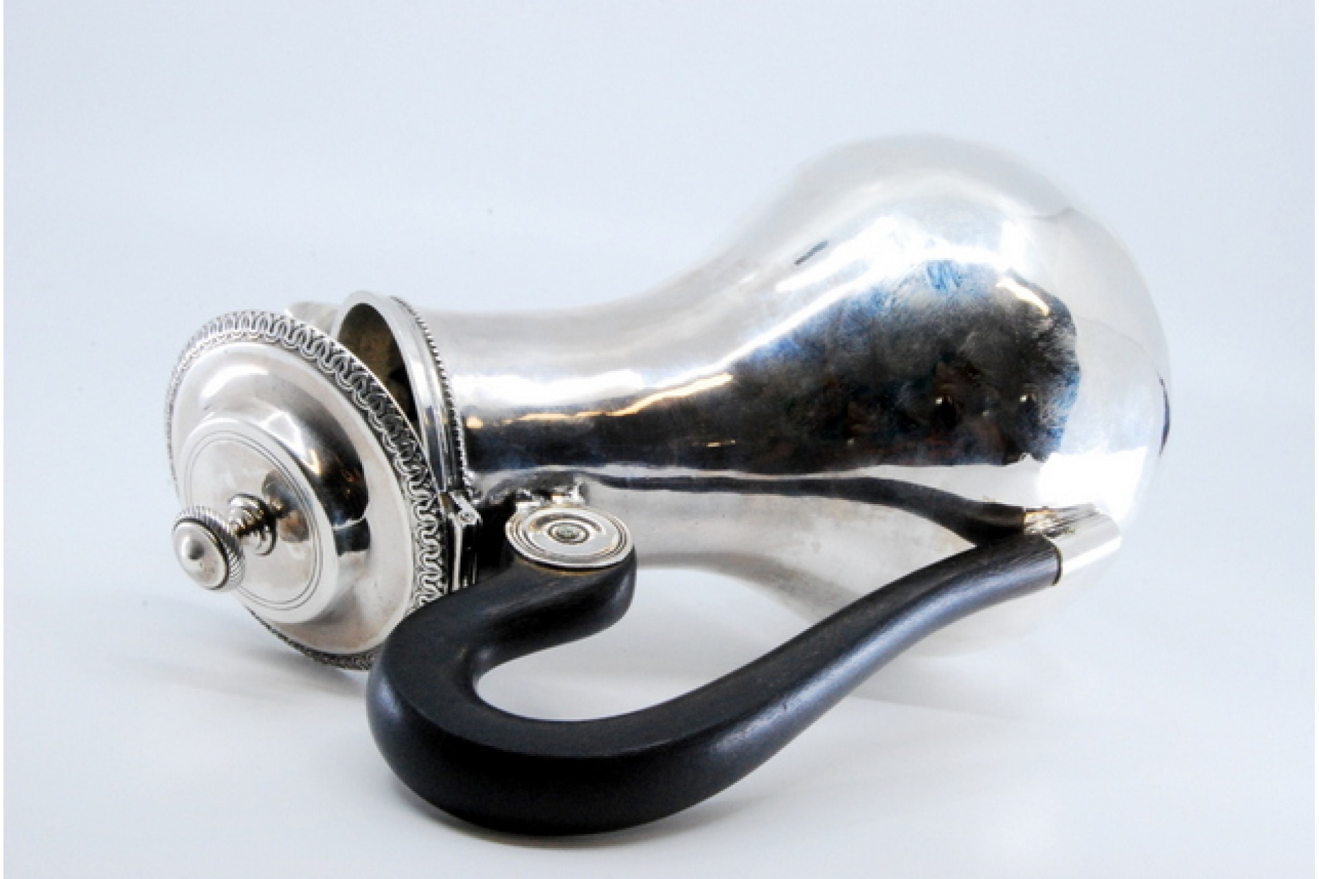 • Descrição: Cafeteira  em prata lisa com pega em madeira de castanho e pomo na tampa.