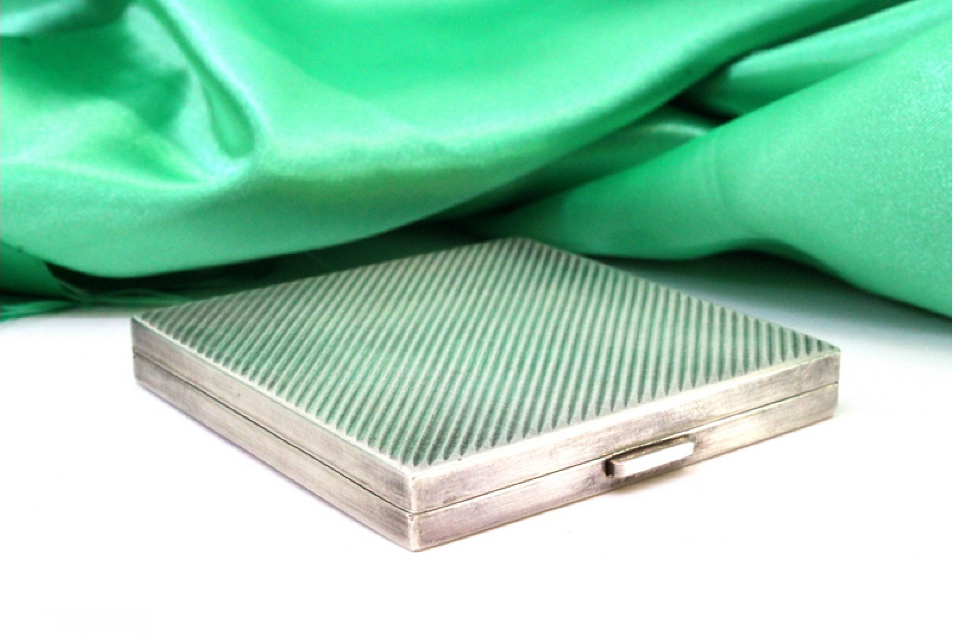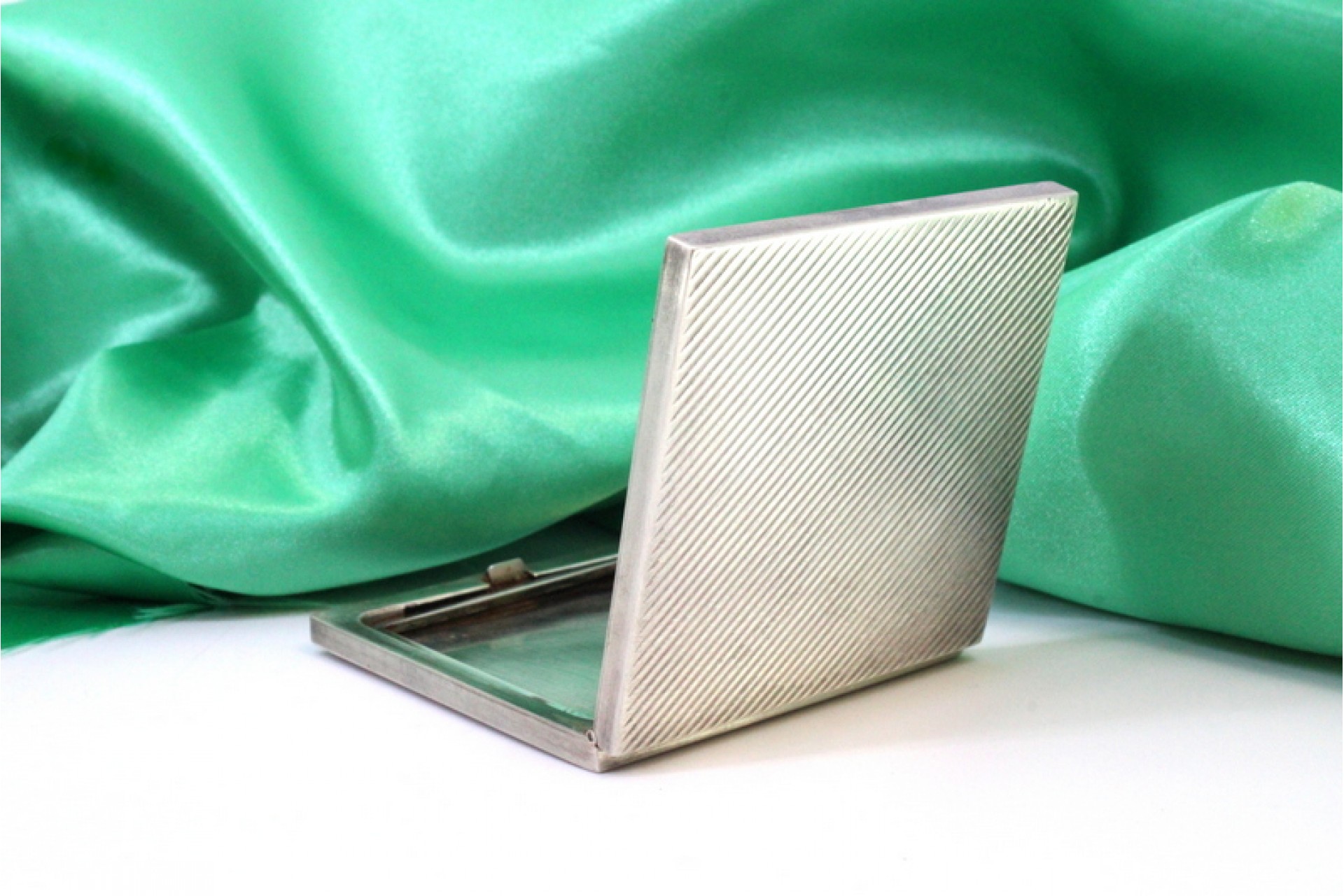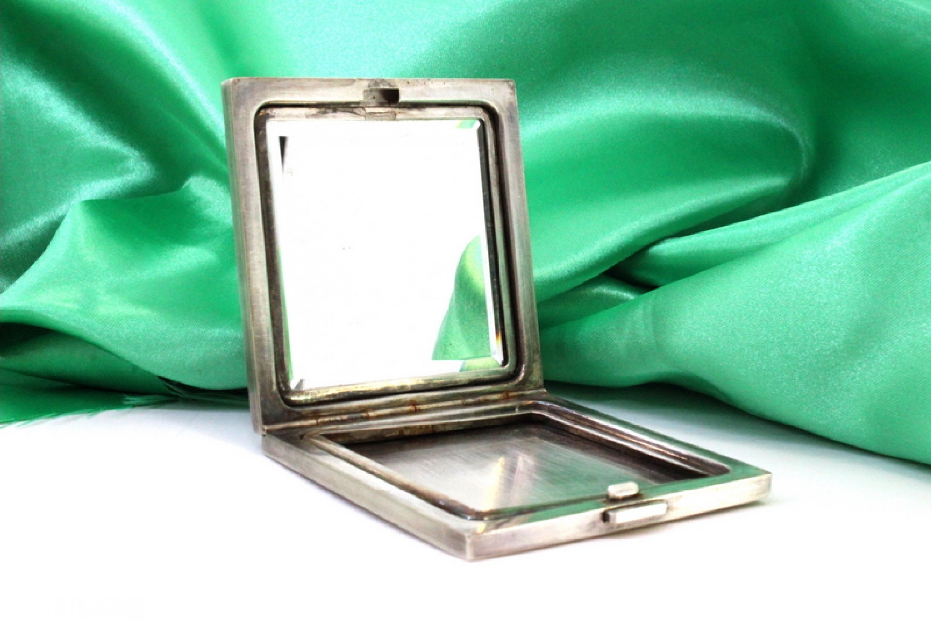 • Descrição: Caixa de toilette em prata com gravados assimétricos espelho no interior e tampa basculante.