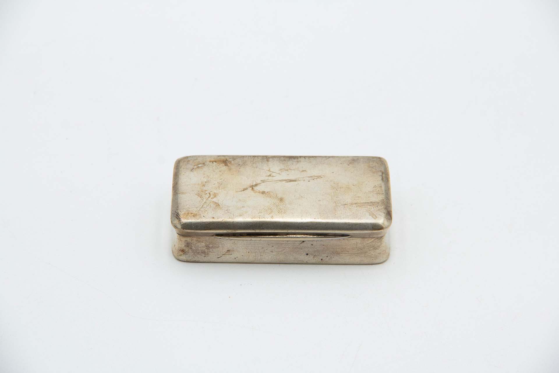 • Descrição: Caixa de rapé em prata de forma retangular de tampa lisa e base relevada com caneluras.