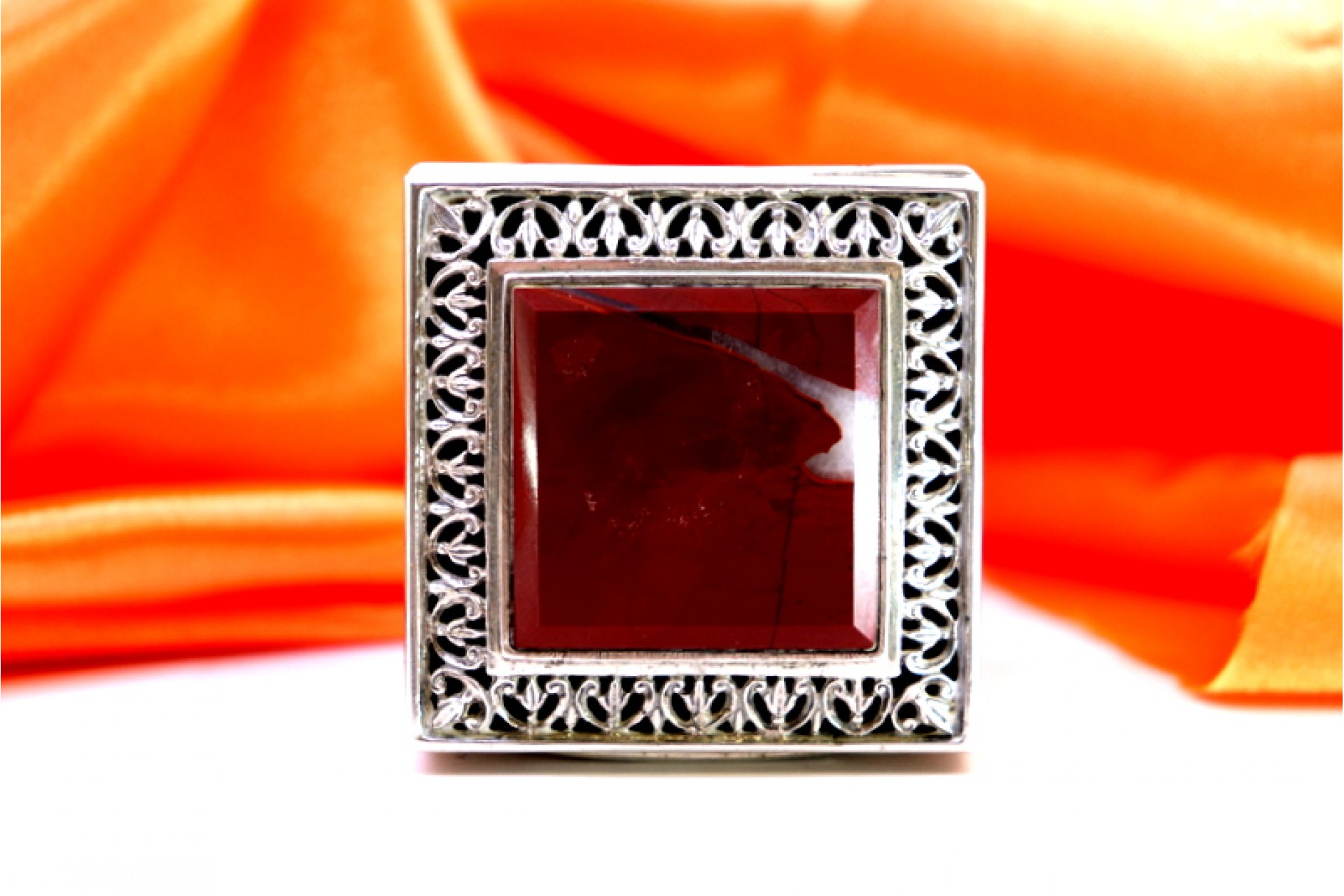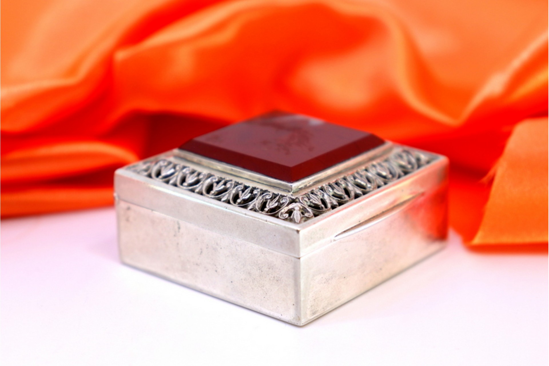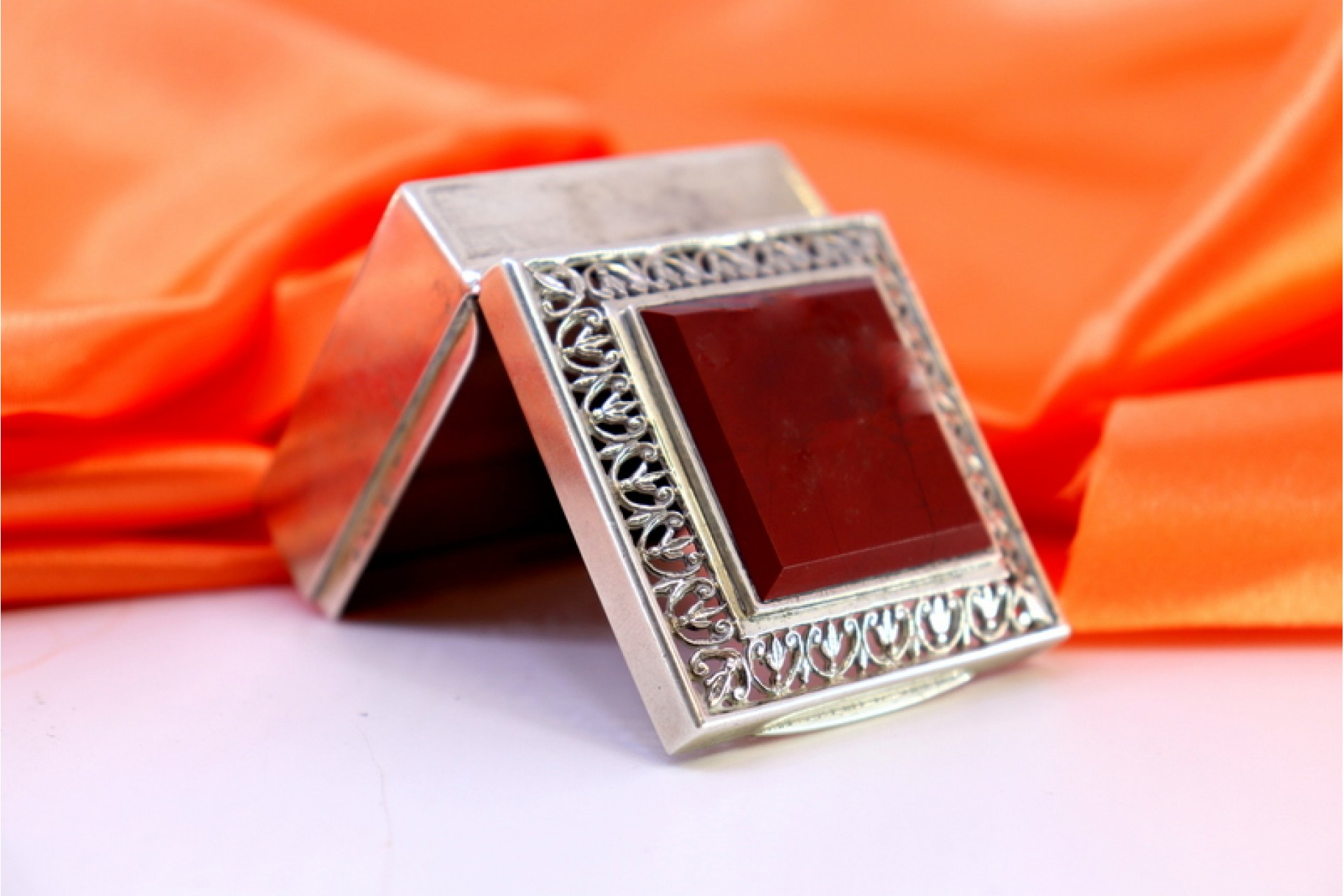 • Descrição: Caixa em prata com relevos e recortes com tampa basculante