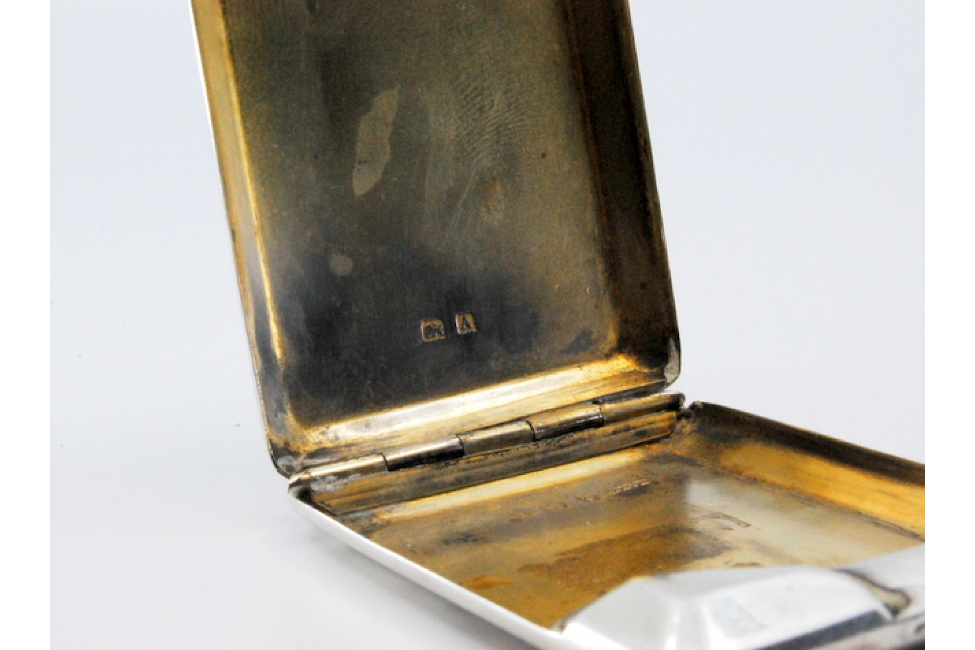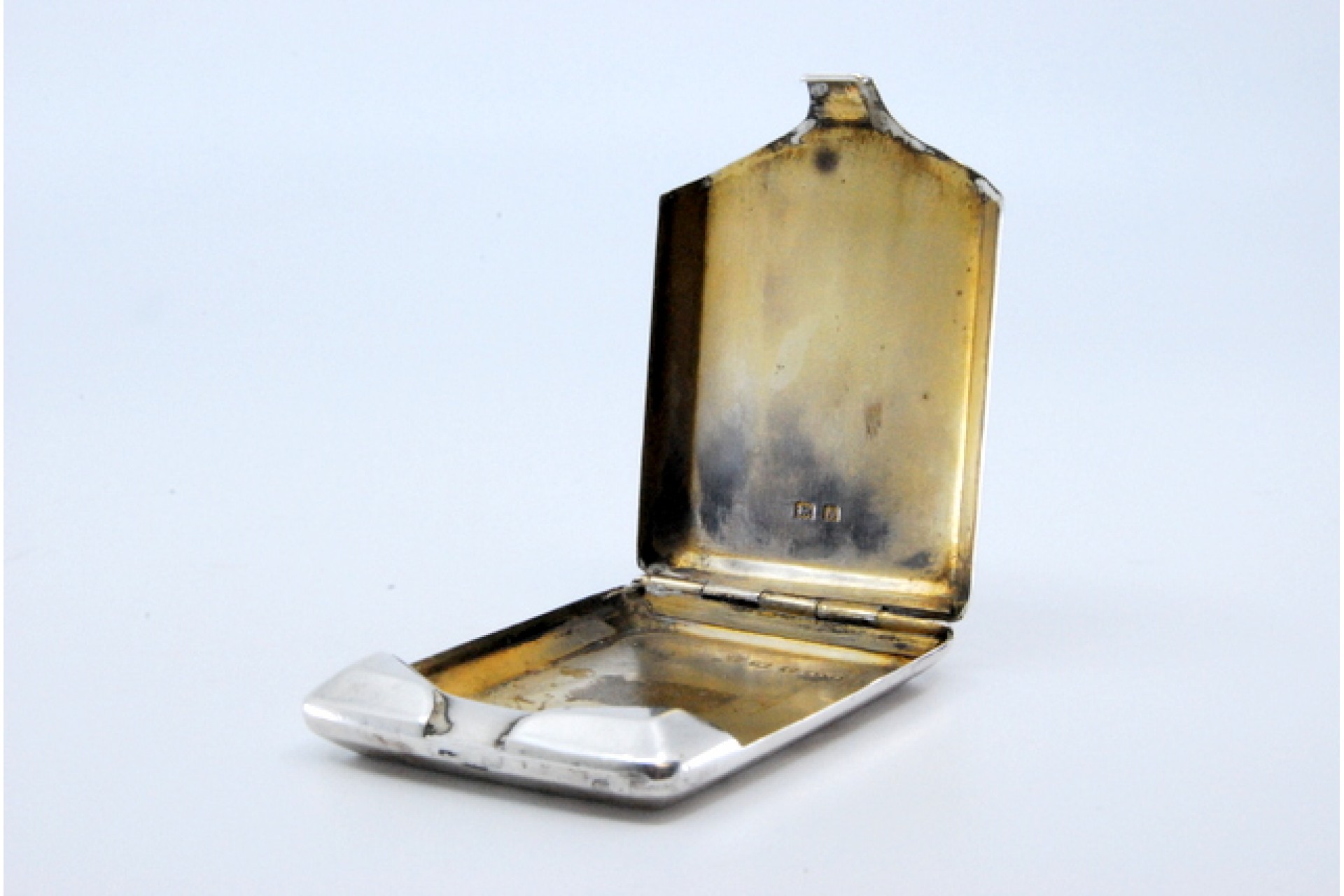 • Descrição: Carteira para fósforos em prata guilhochada com bandas ao alto e interior dourado.