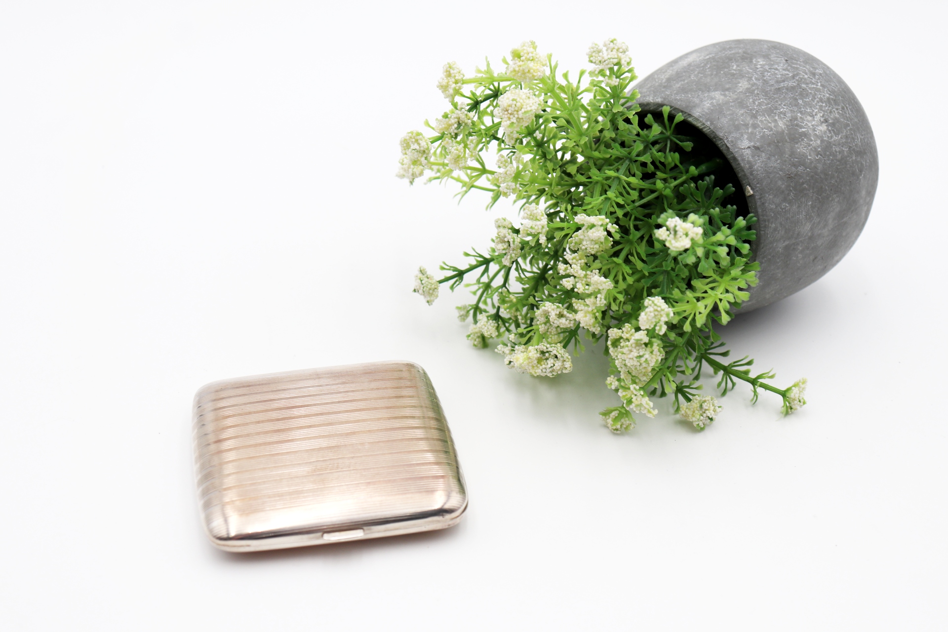 • Descrição: Cigarreira de prata com bandas guilhochadas e estojo original