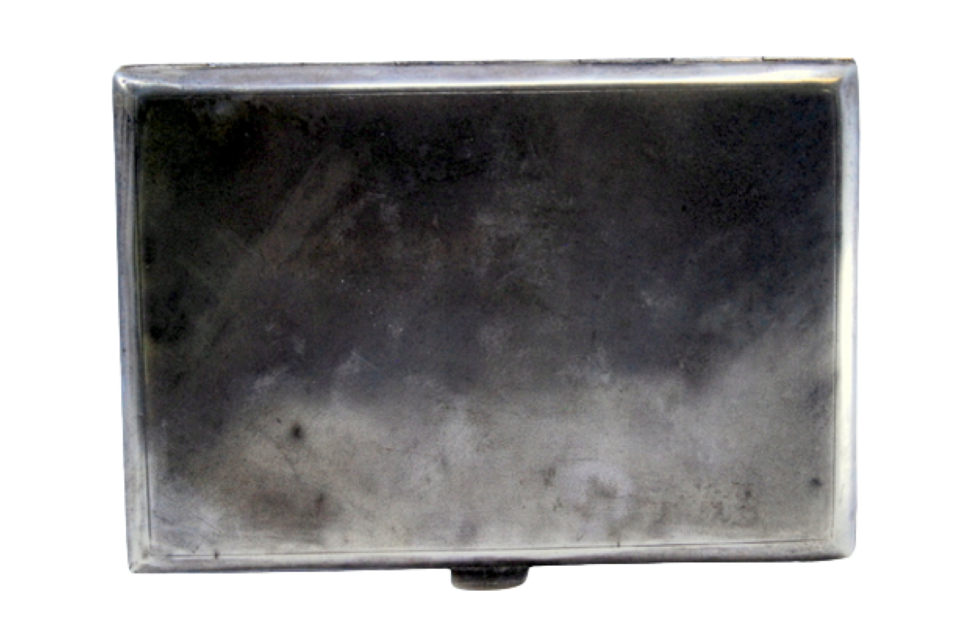 Cigarreira em prata foscada com linhas geométricas na tampa basculante.