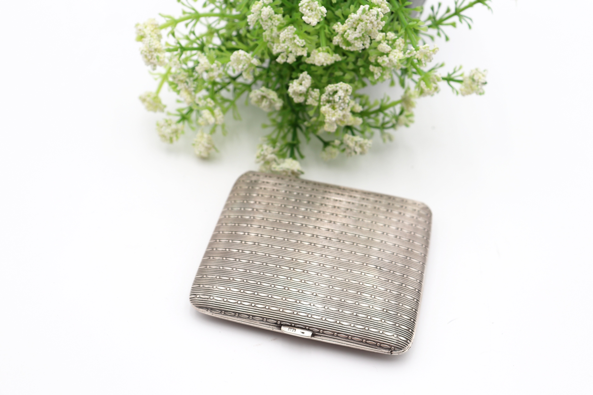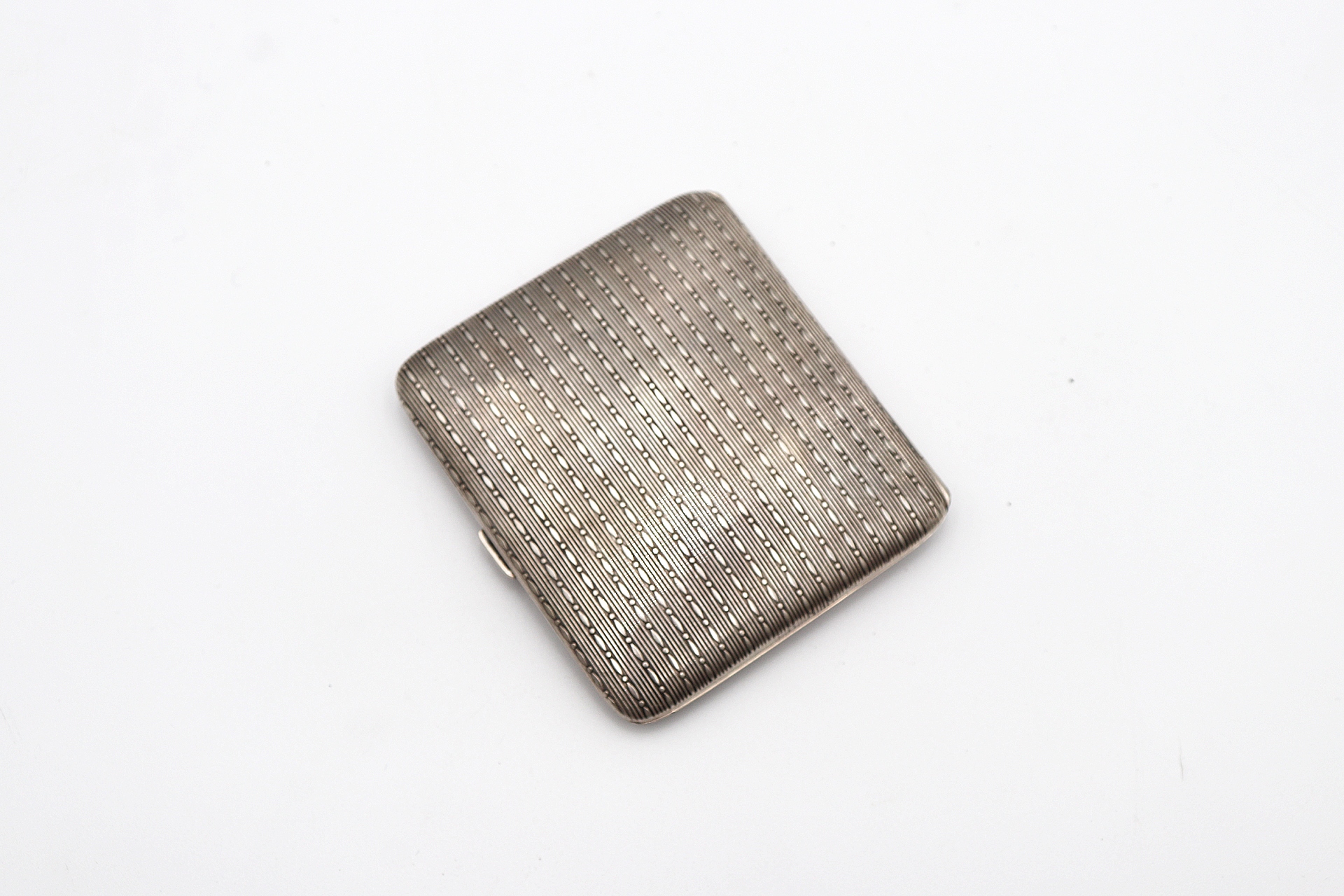 Etiquetas: Prata, guilhochada, tampa de mola, cigarreira