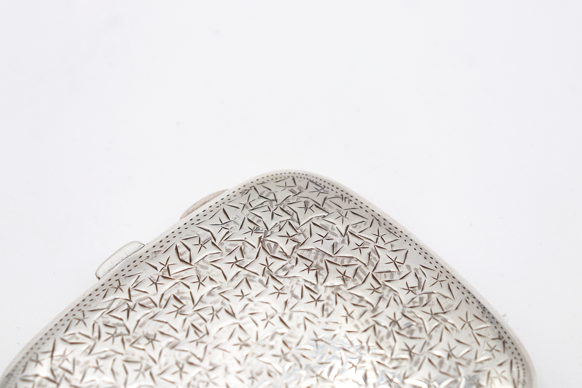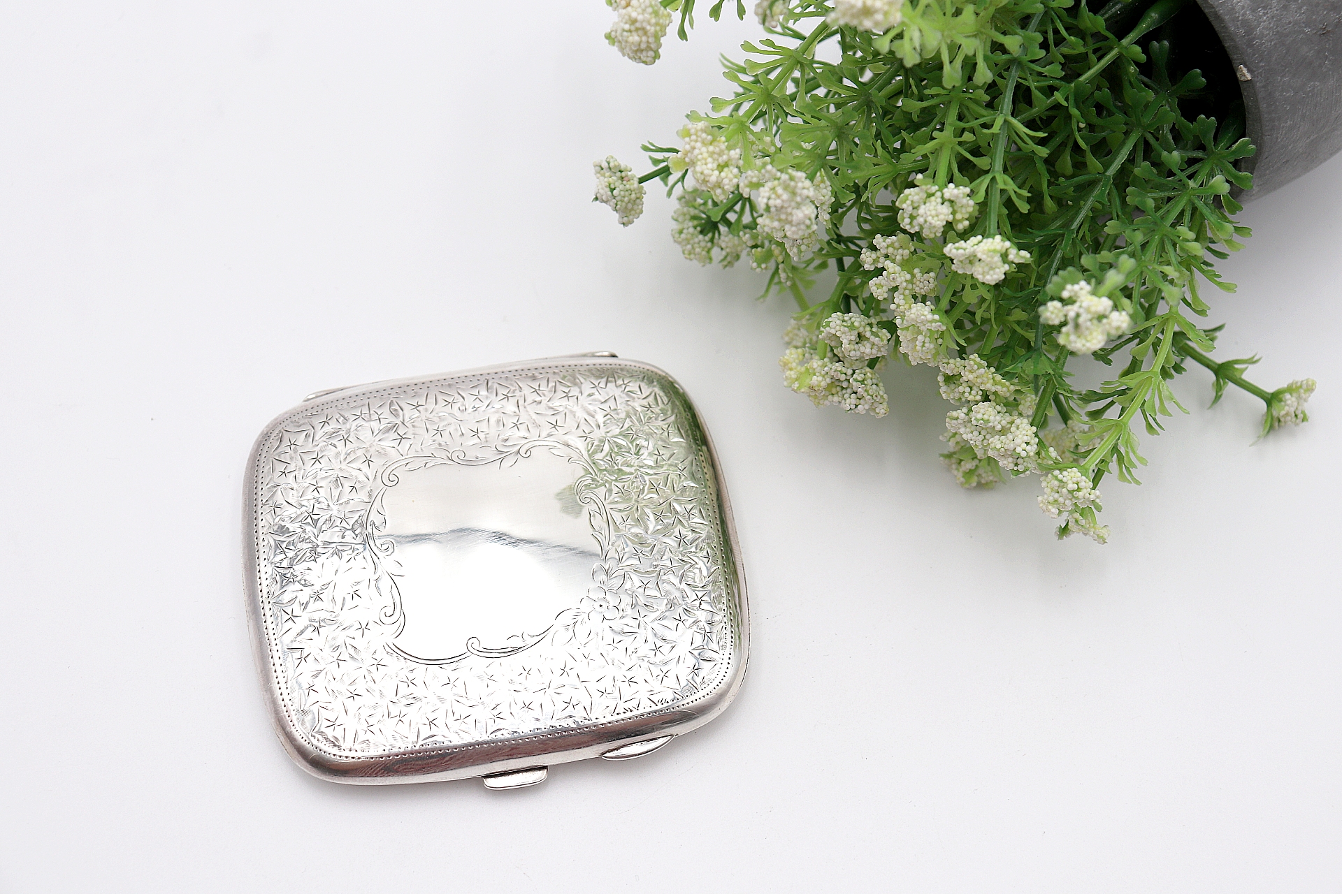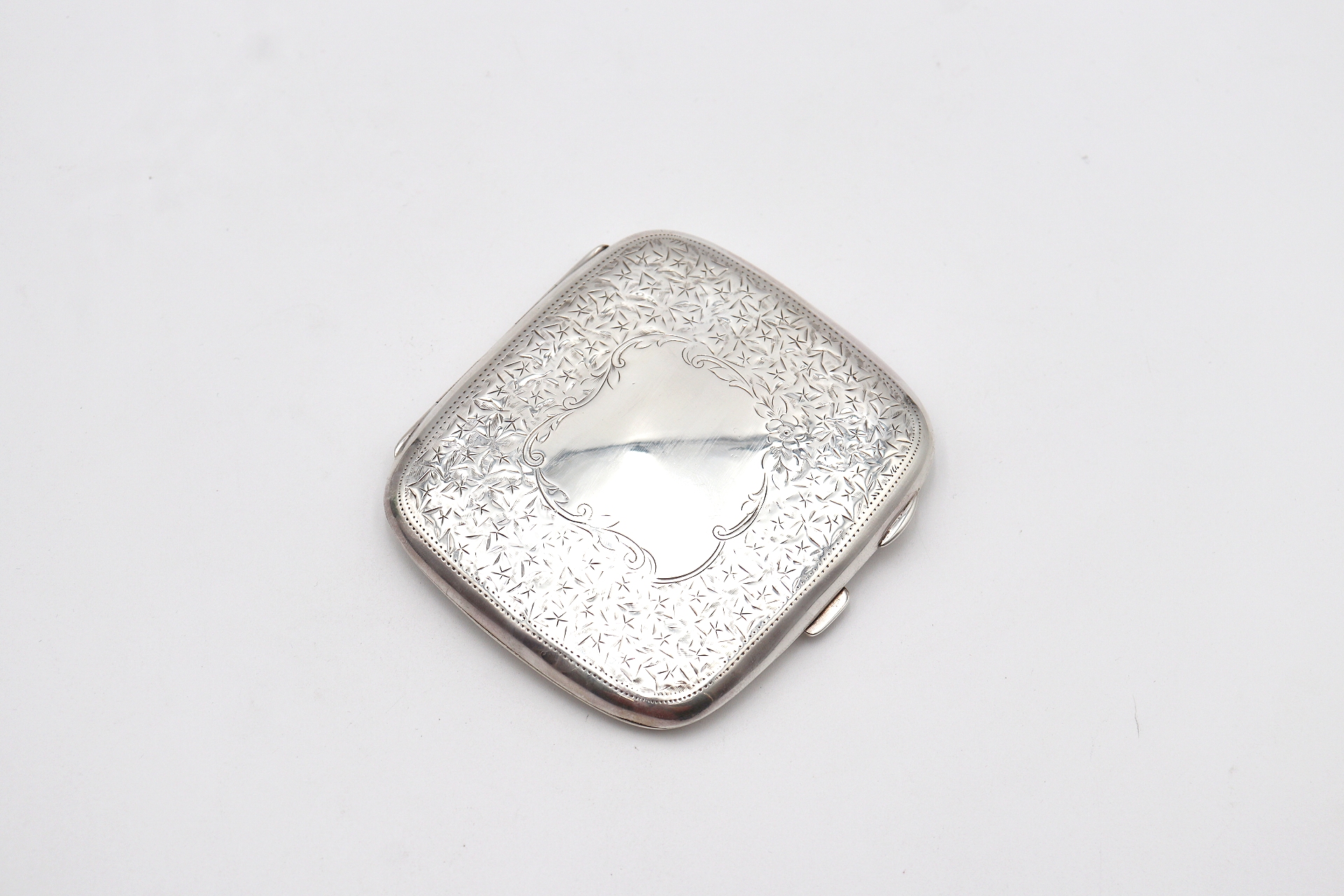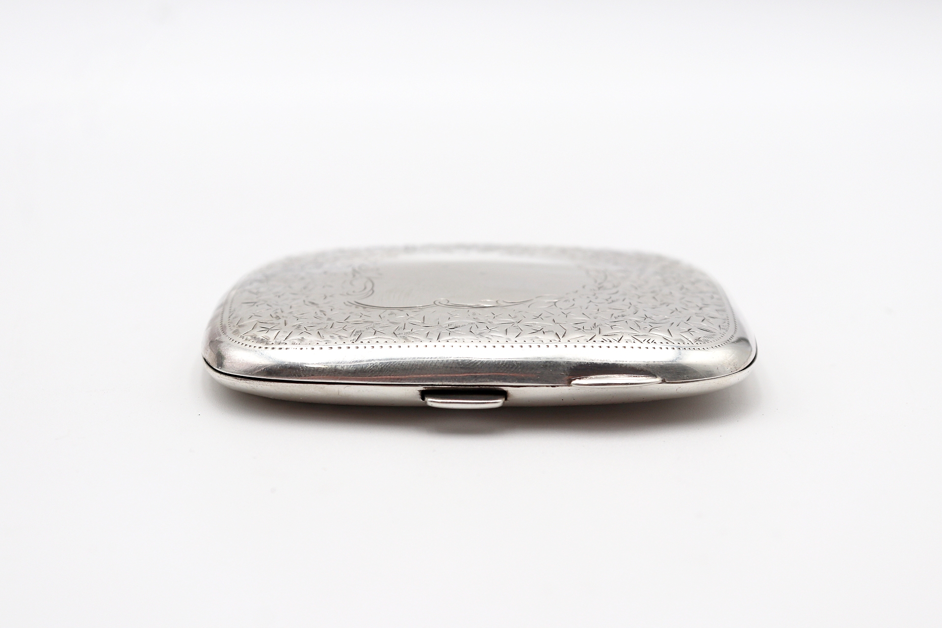 • Descrição: Cigarreira em prata martelada com decoração gravada e cartela para monograma.