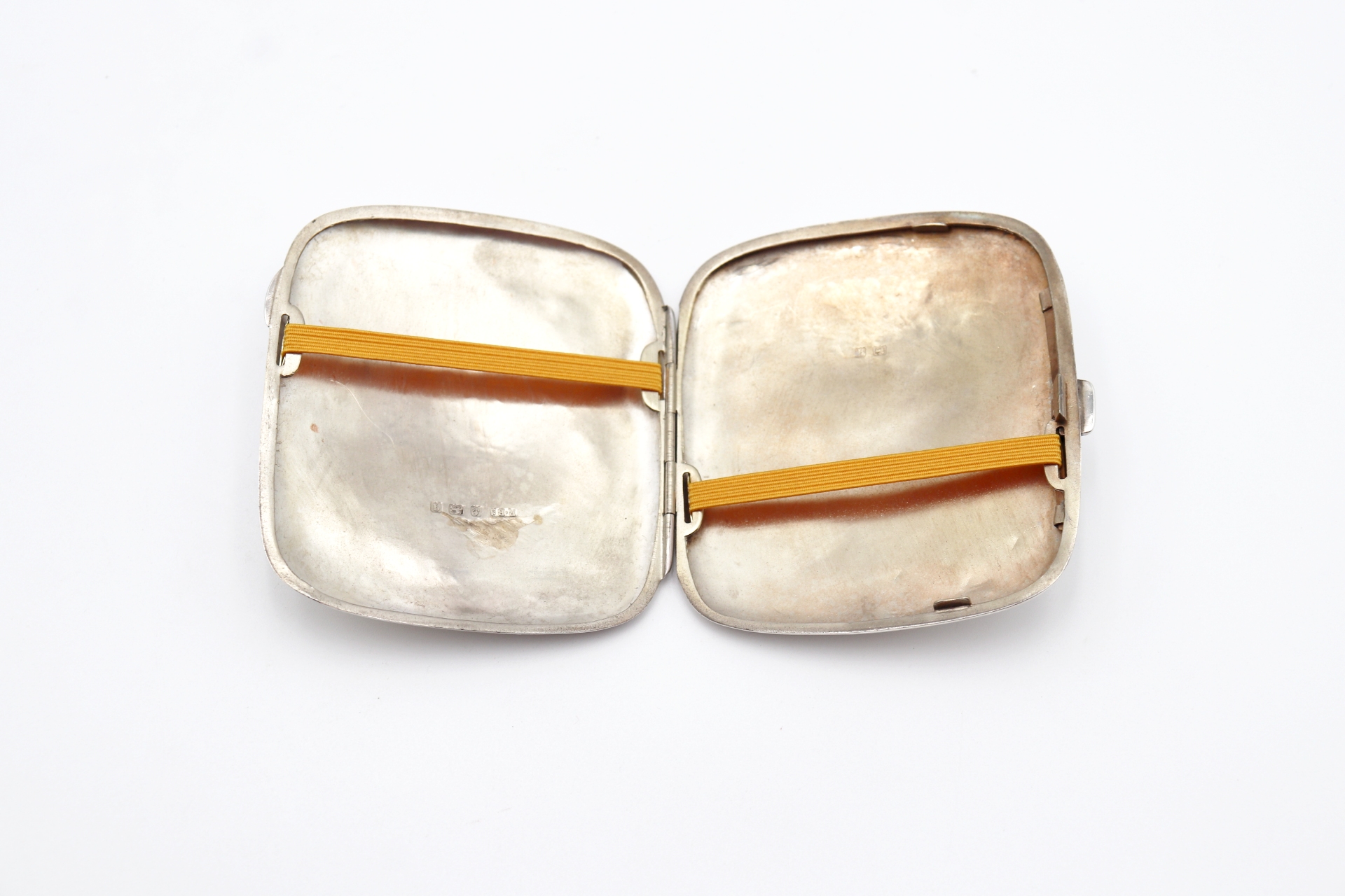 Etiquetas: Prata, cigarreira, gravados, cartela, monograma