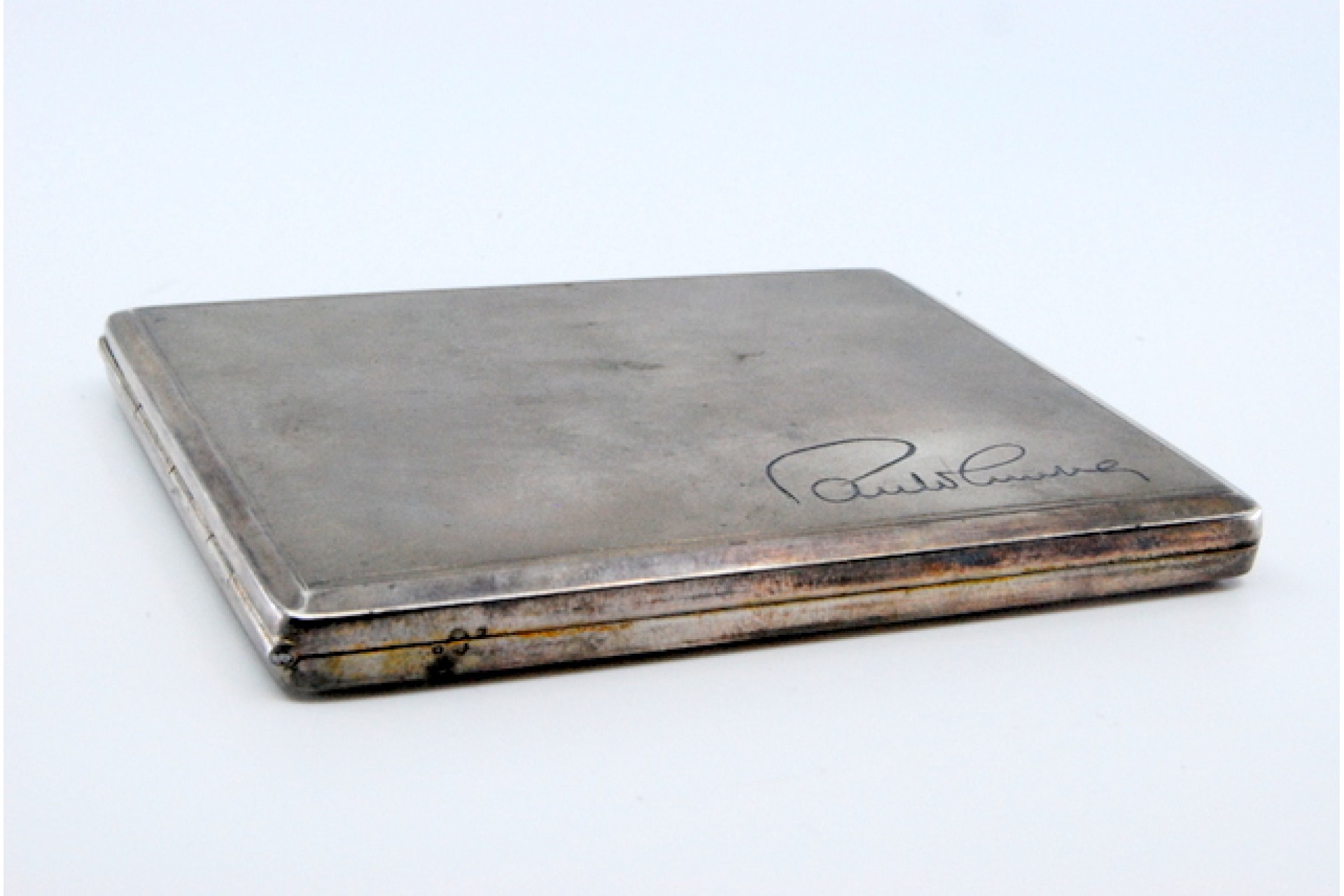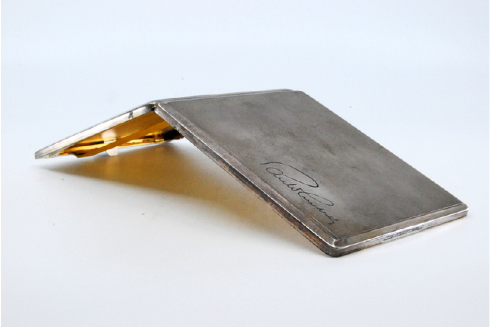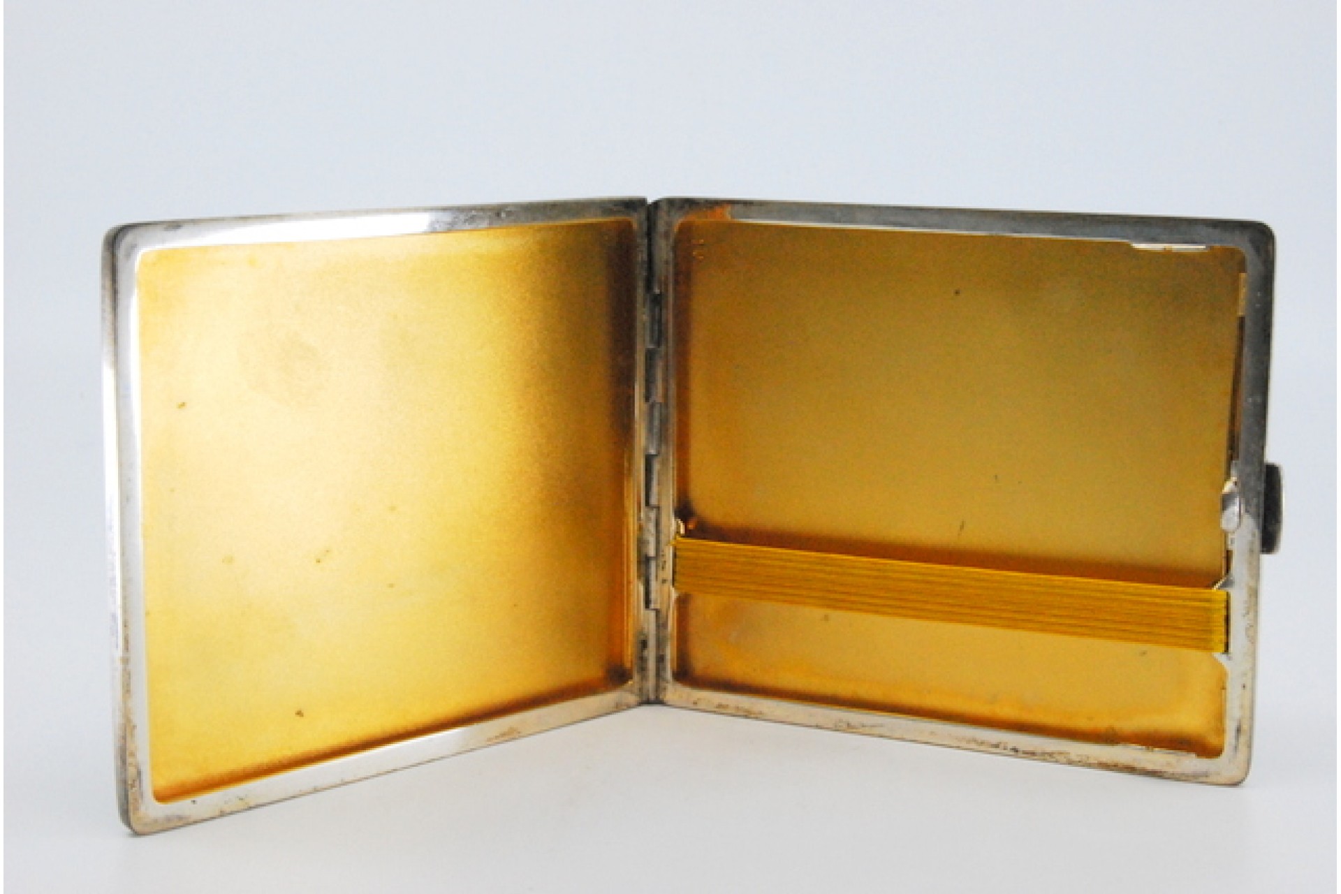 • Descrição: Cigarreira em prata fosca, interior dourado e tampa basculante.