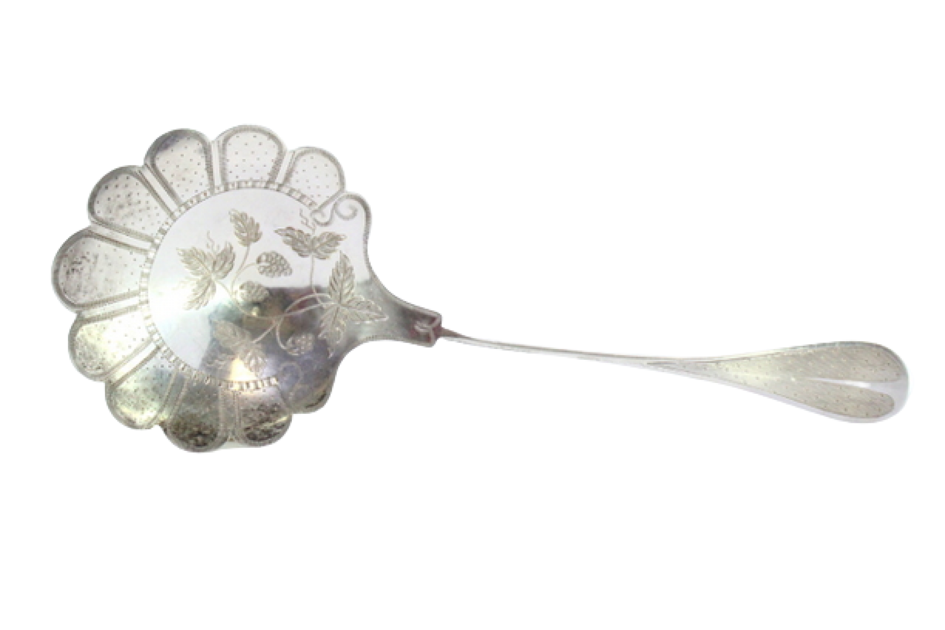 • Descrição: Colher de molhos em prata com motivos florais gravados na concha  e cabo guilhochado.