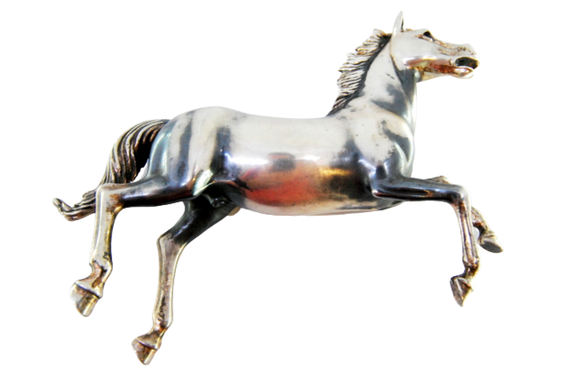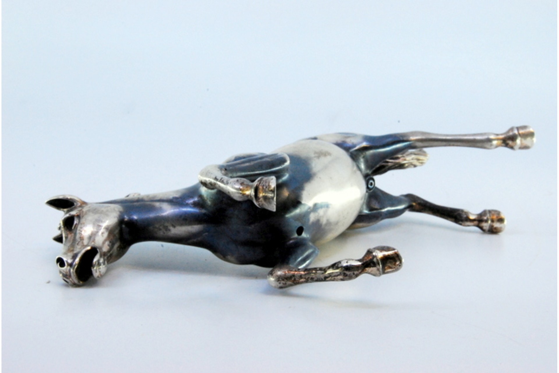 • Descrição: Cavalo em prata nielada em posição de galope.