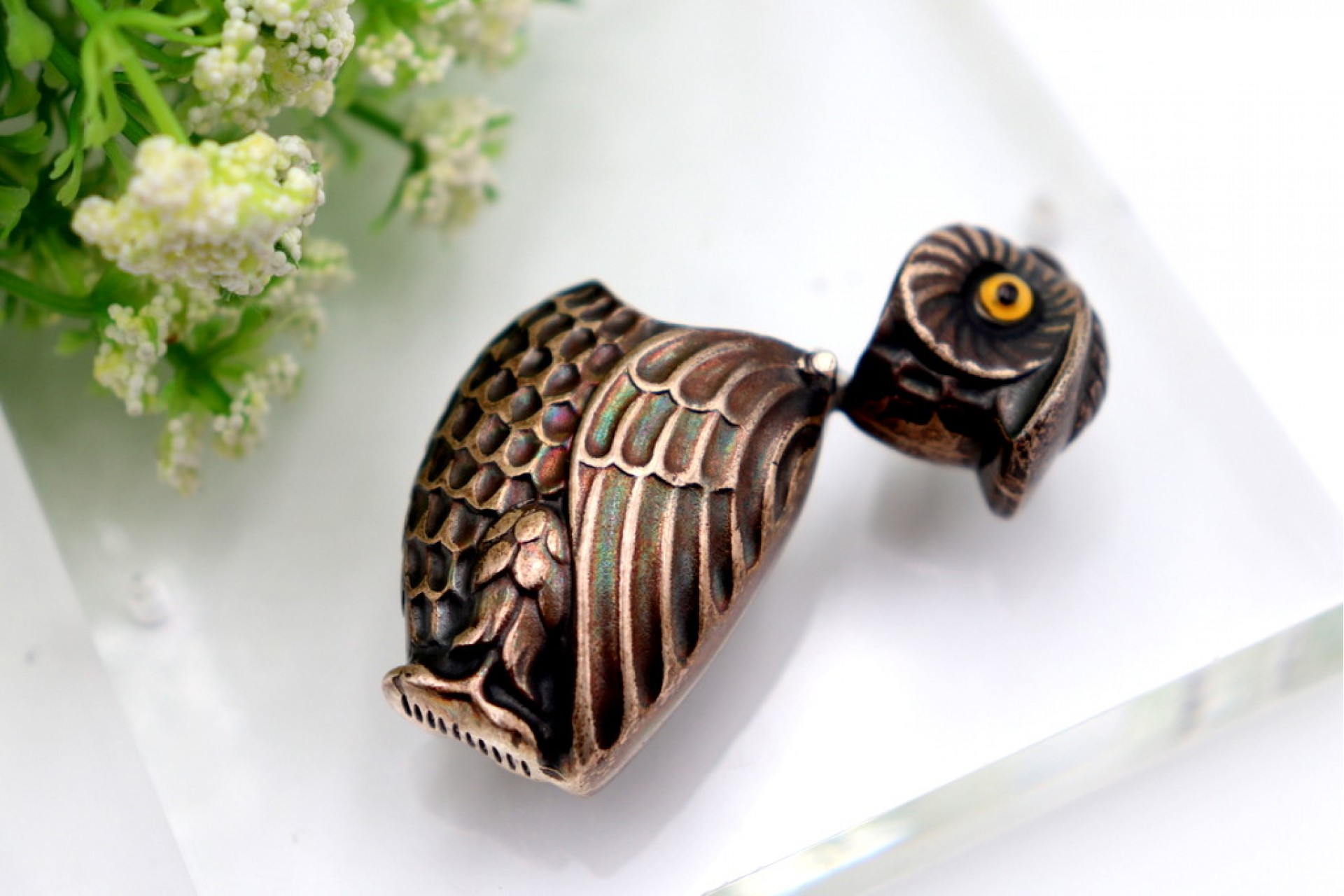 • Descrição: Fosforeira em prata em forma de mocho com relevos e tampa basculante