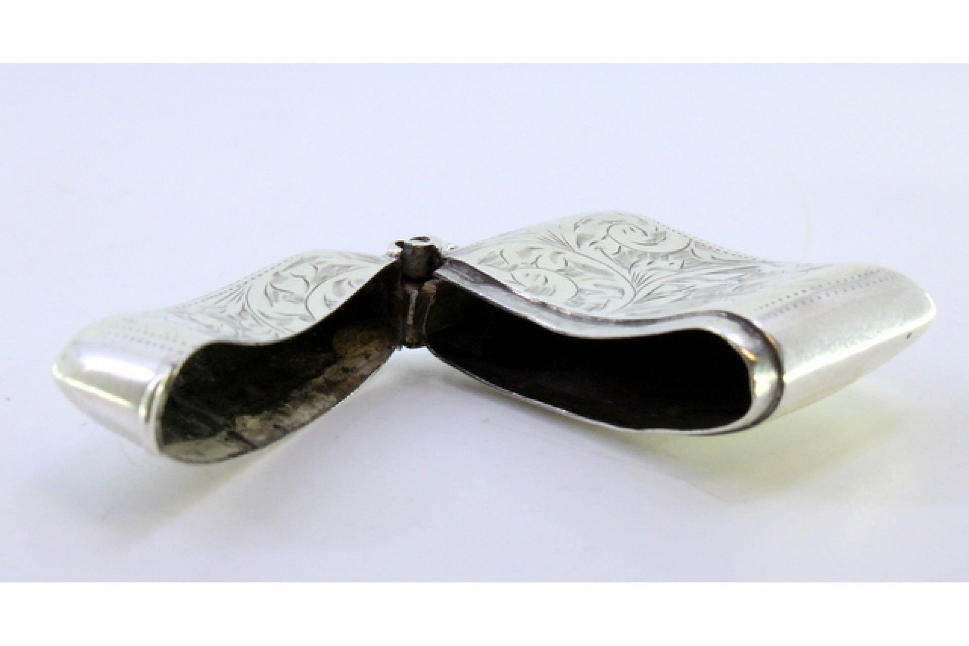 Fosforeira em prata de forma curva com motivos vegetalistas gravados envolvendo cartela para monograma