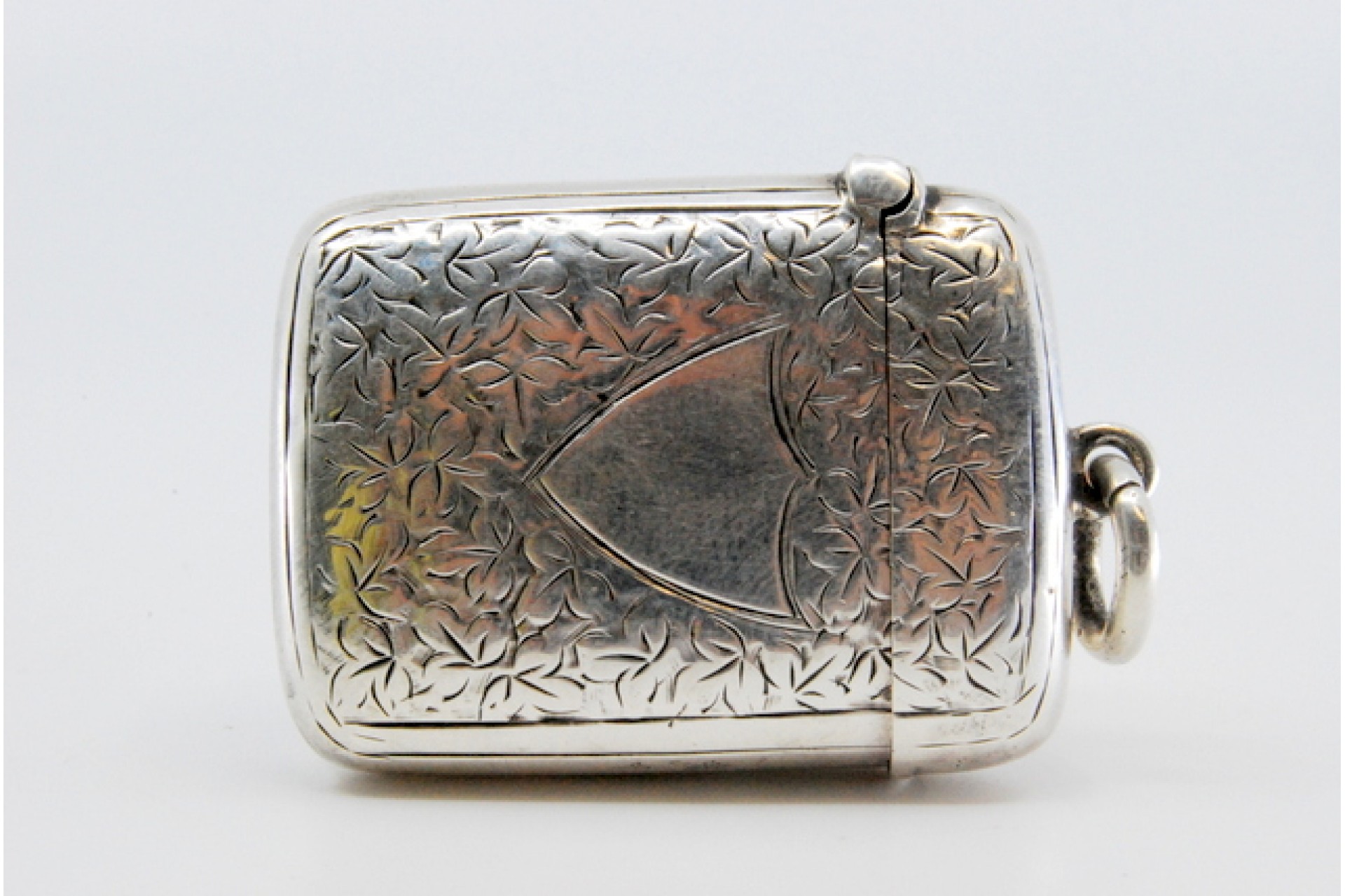 Fosforeira em prata com motivos vegetalistas gravados envolvendo cartela para monograma