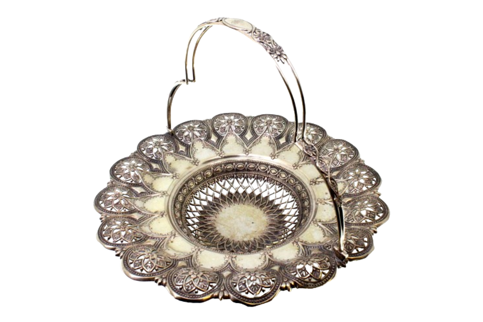 Fruteira em prata com recortes, relevados com motivos florais asa articulada