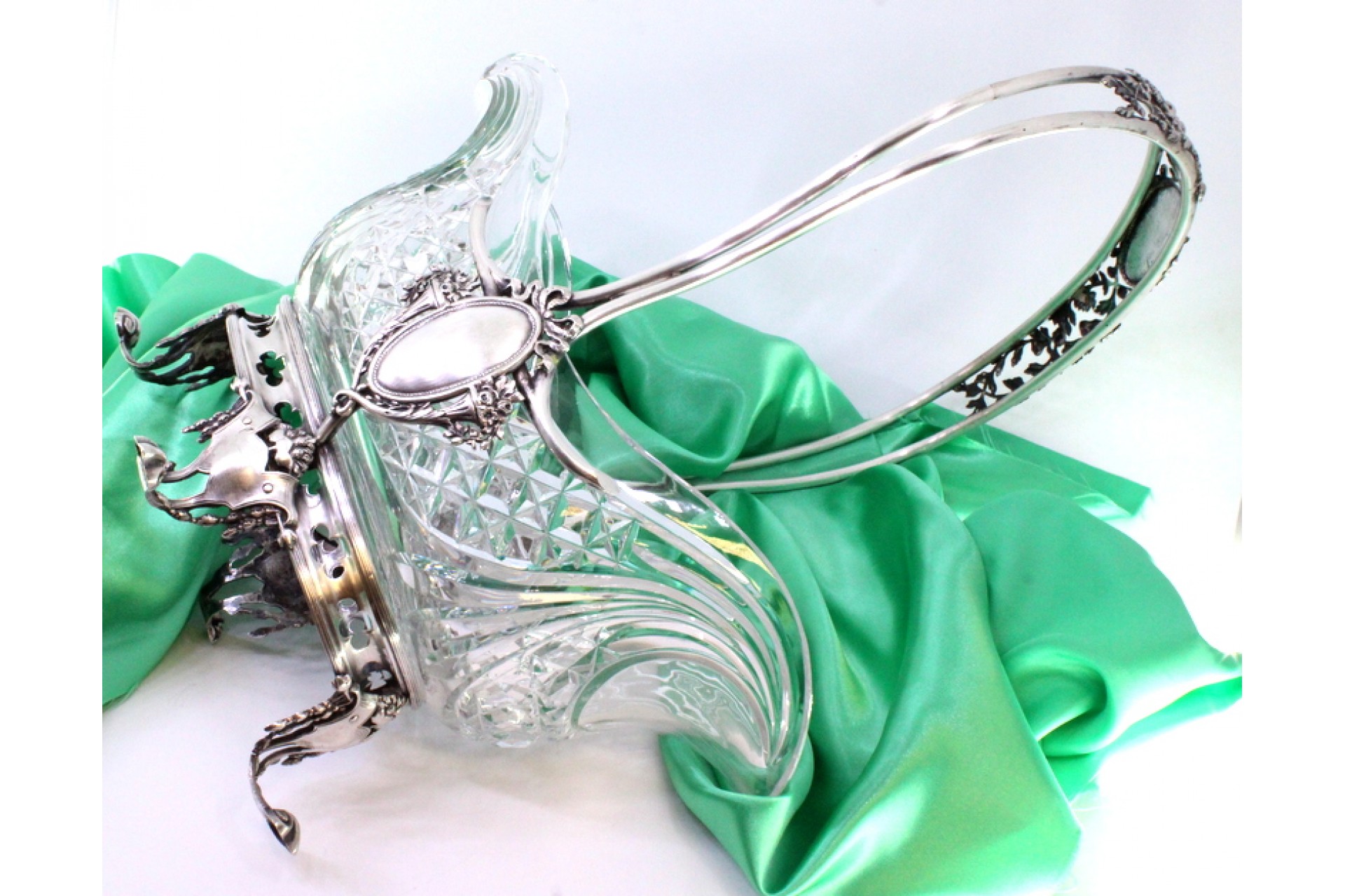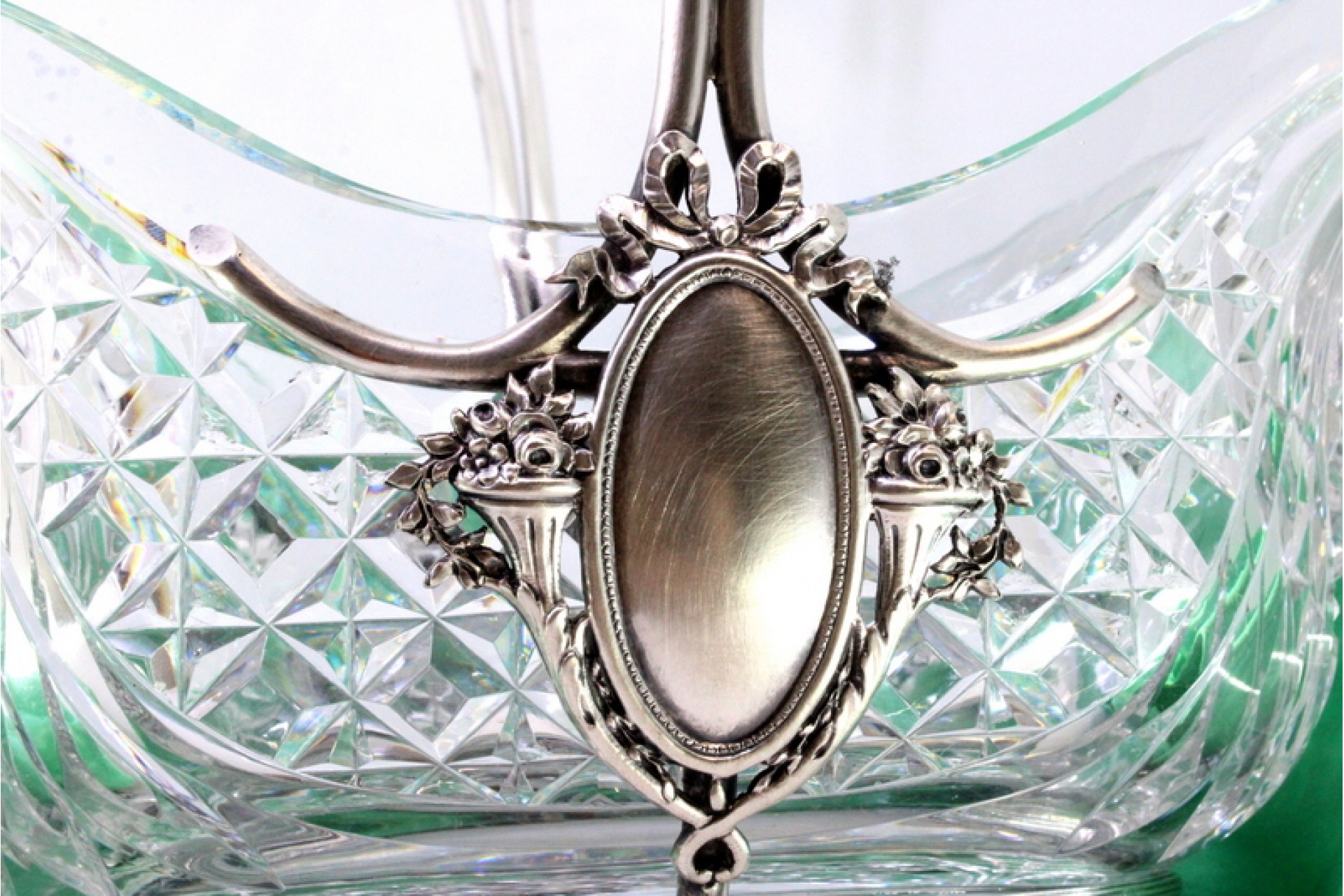 Fruteira centro de mesa em vidro lapidado em estrutura de prata