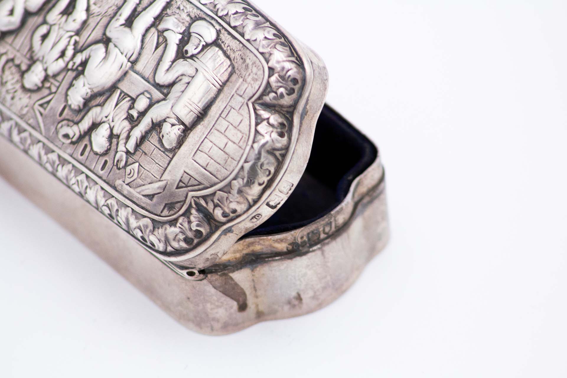 • Descrição: Guarda jóias em prata com cena bucólica relevada na tampa e interior forrado a aveludo.