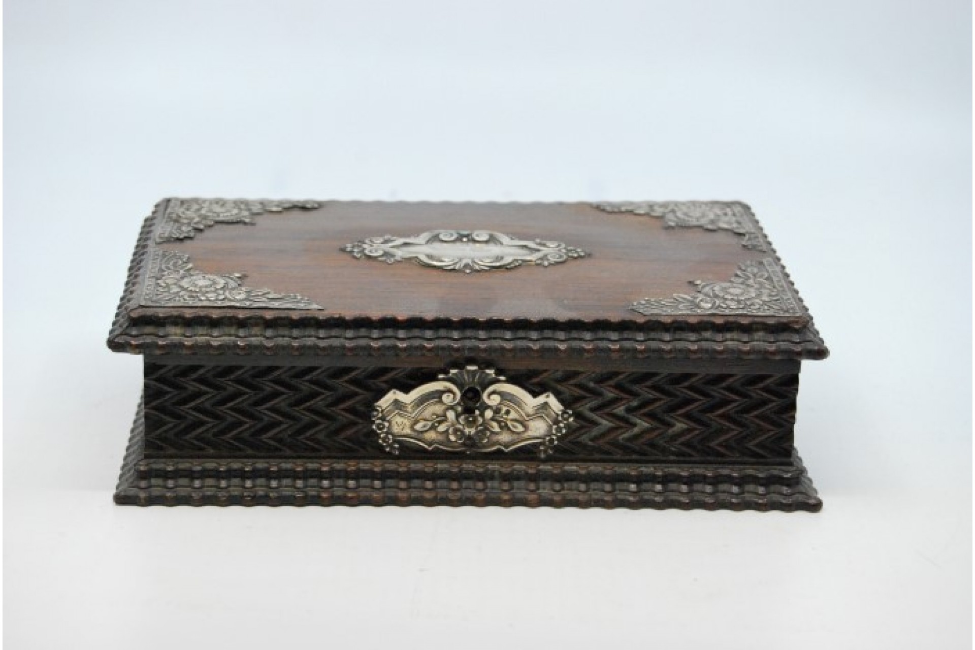Guarda jóias em madeira com aplicações de prata