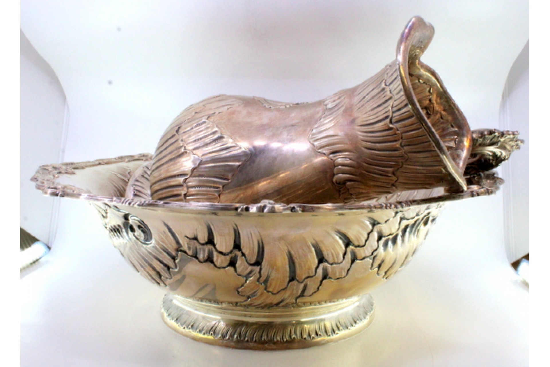 Lavanda e gomil em prata com relevos envolvendo cartelas para monogramas.