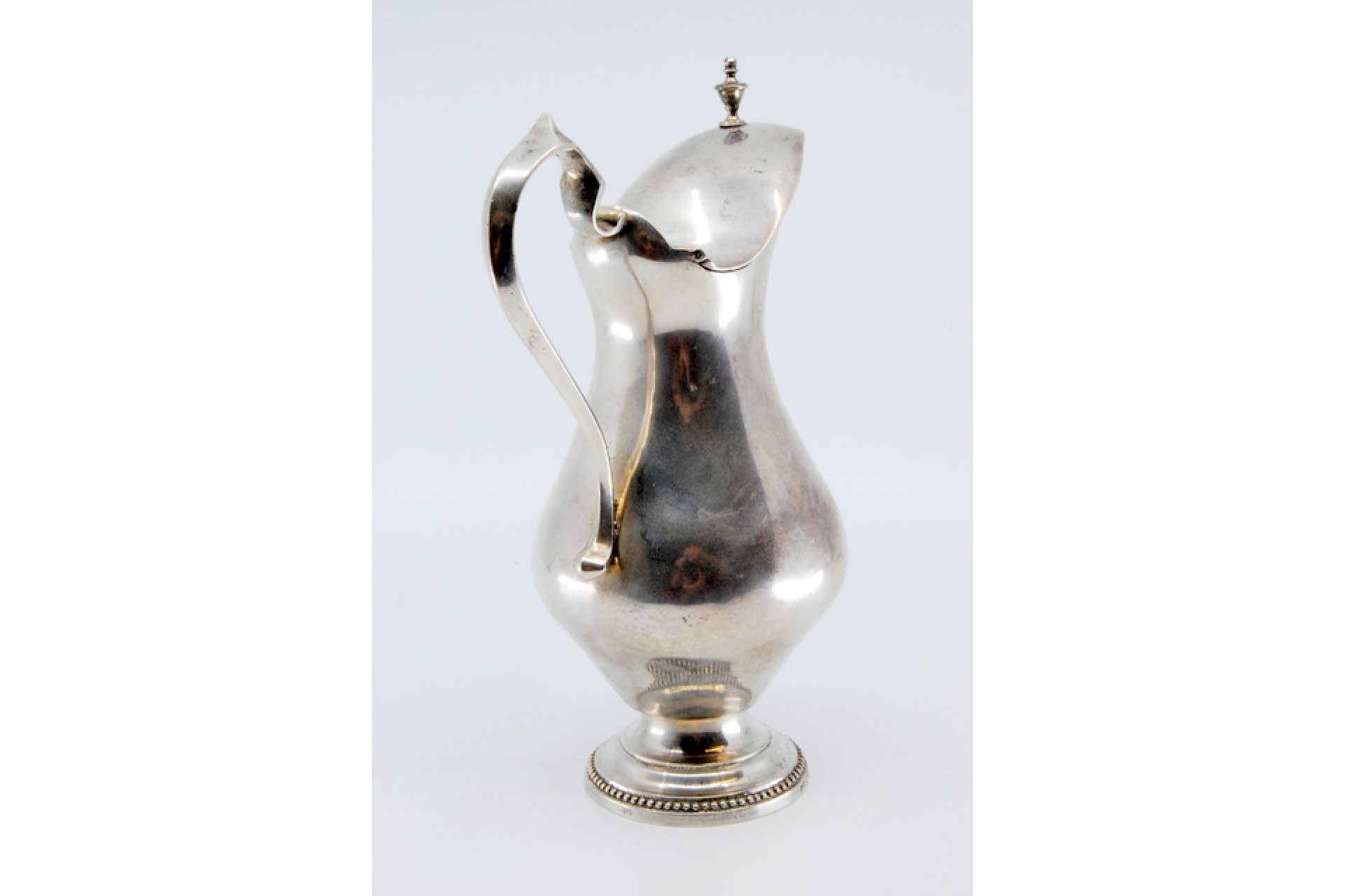 • Descrição: Leiteira em prata lisa com pomo na tampa basculante e base com friso perlado.