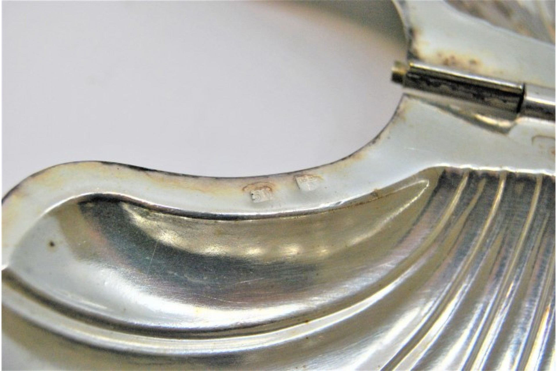 • Descrição: Mantegueira de prata em forma de dupla concha e assente sobre três pés.