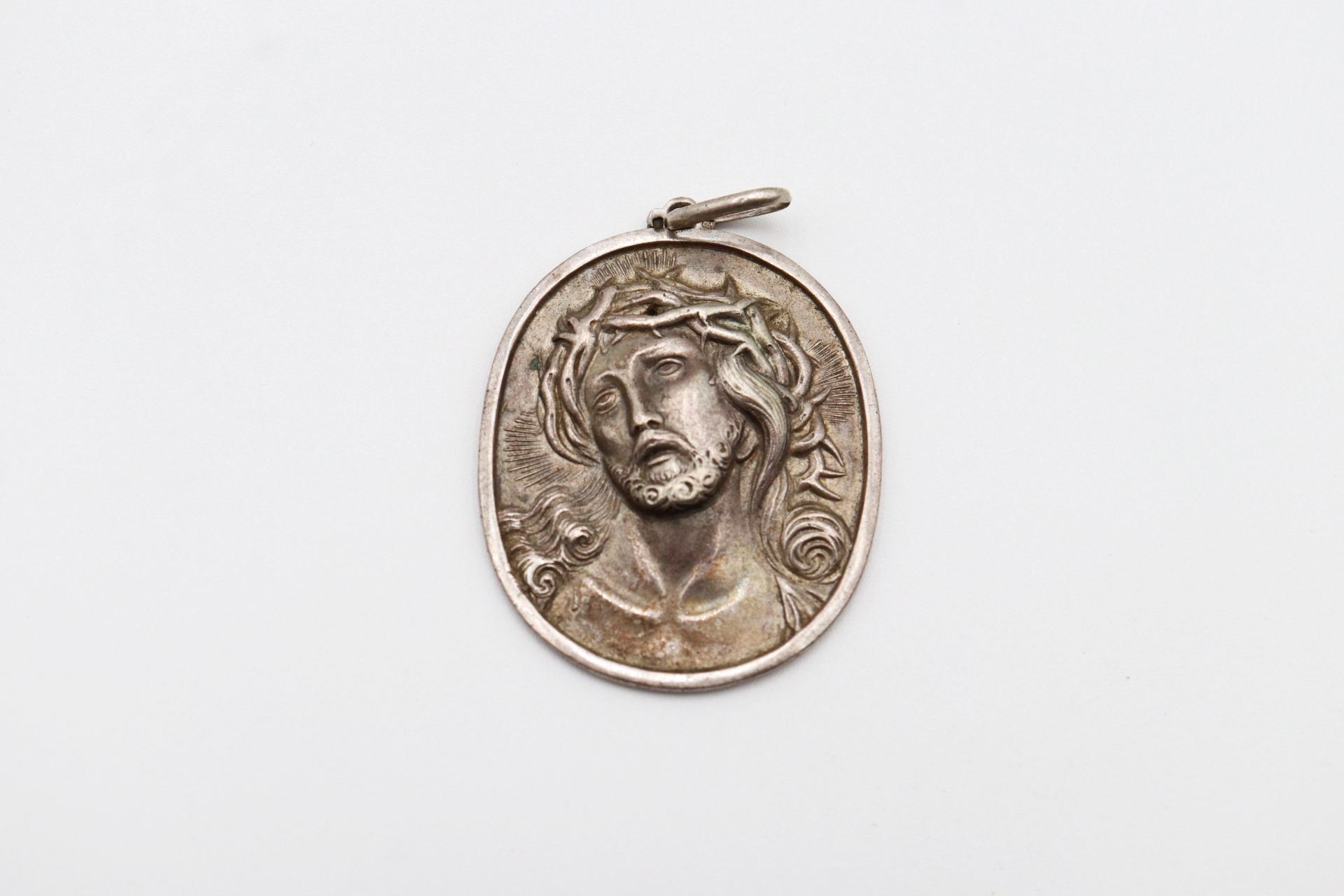 • Descrição: Medalha de prata com cabeça de Cristo e argola de suspensão.