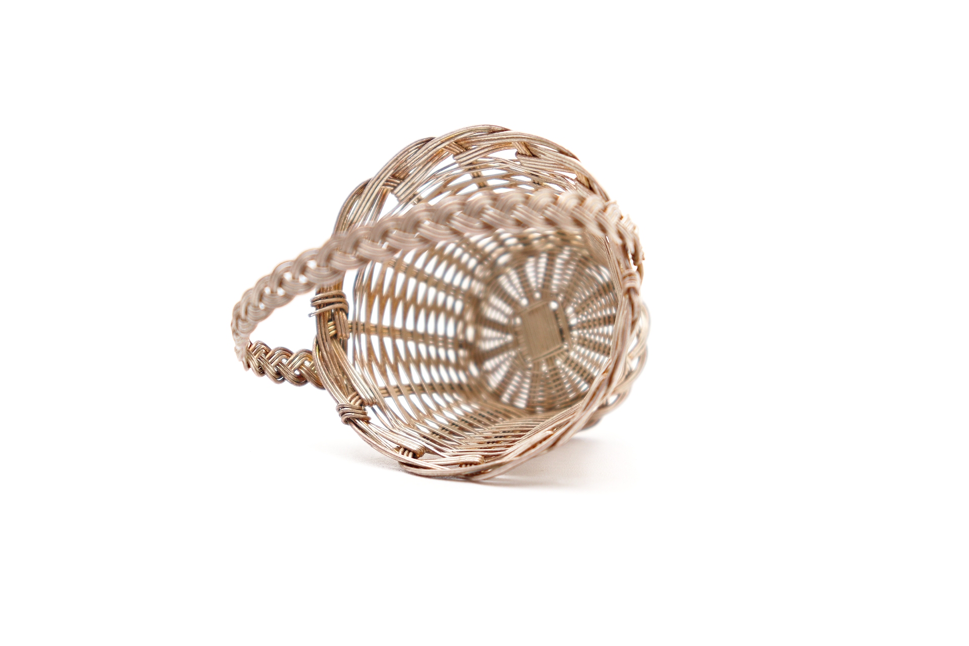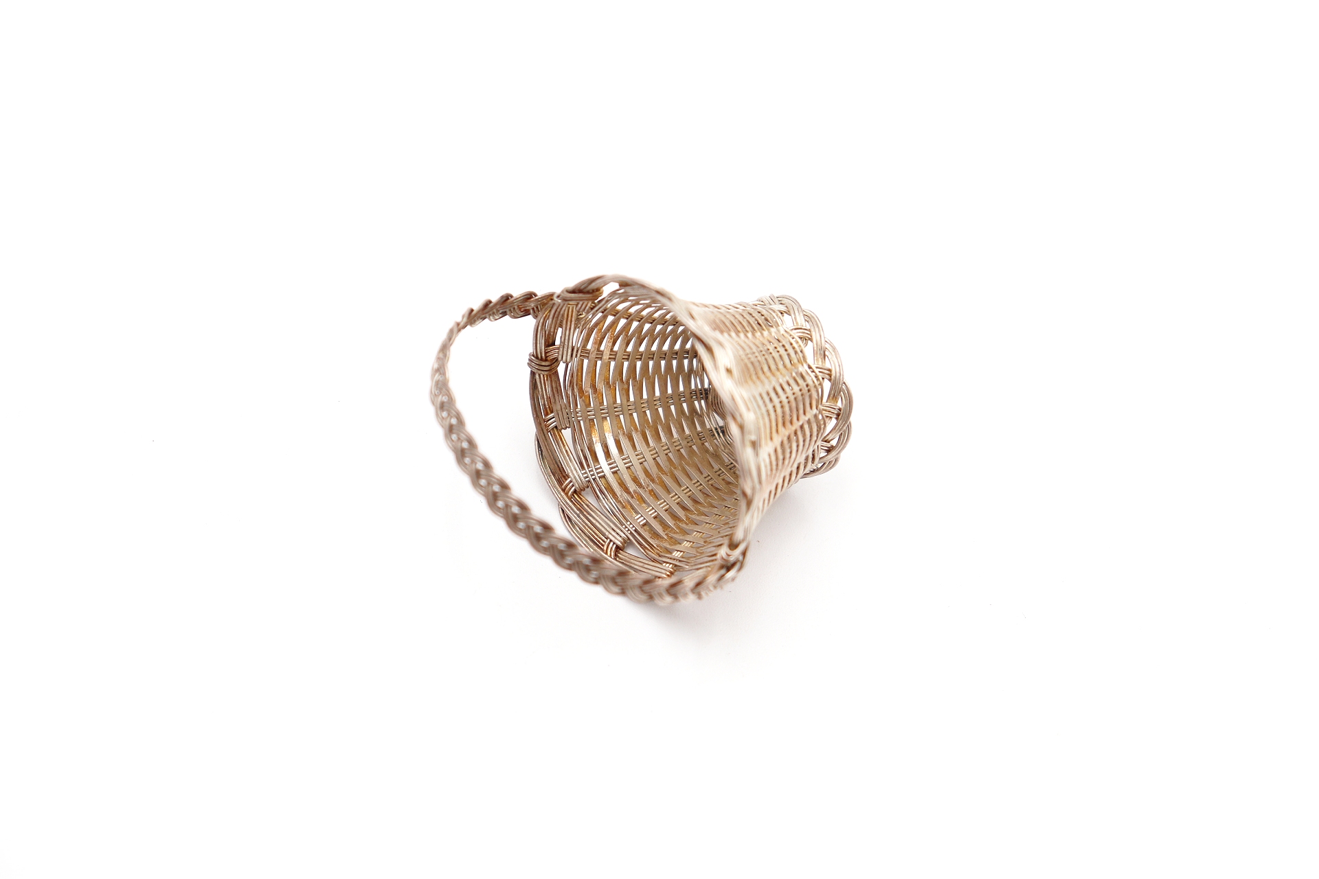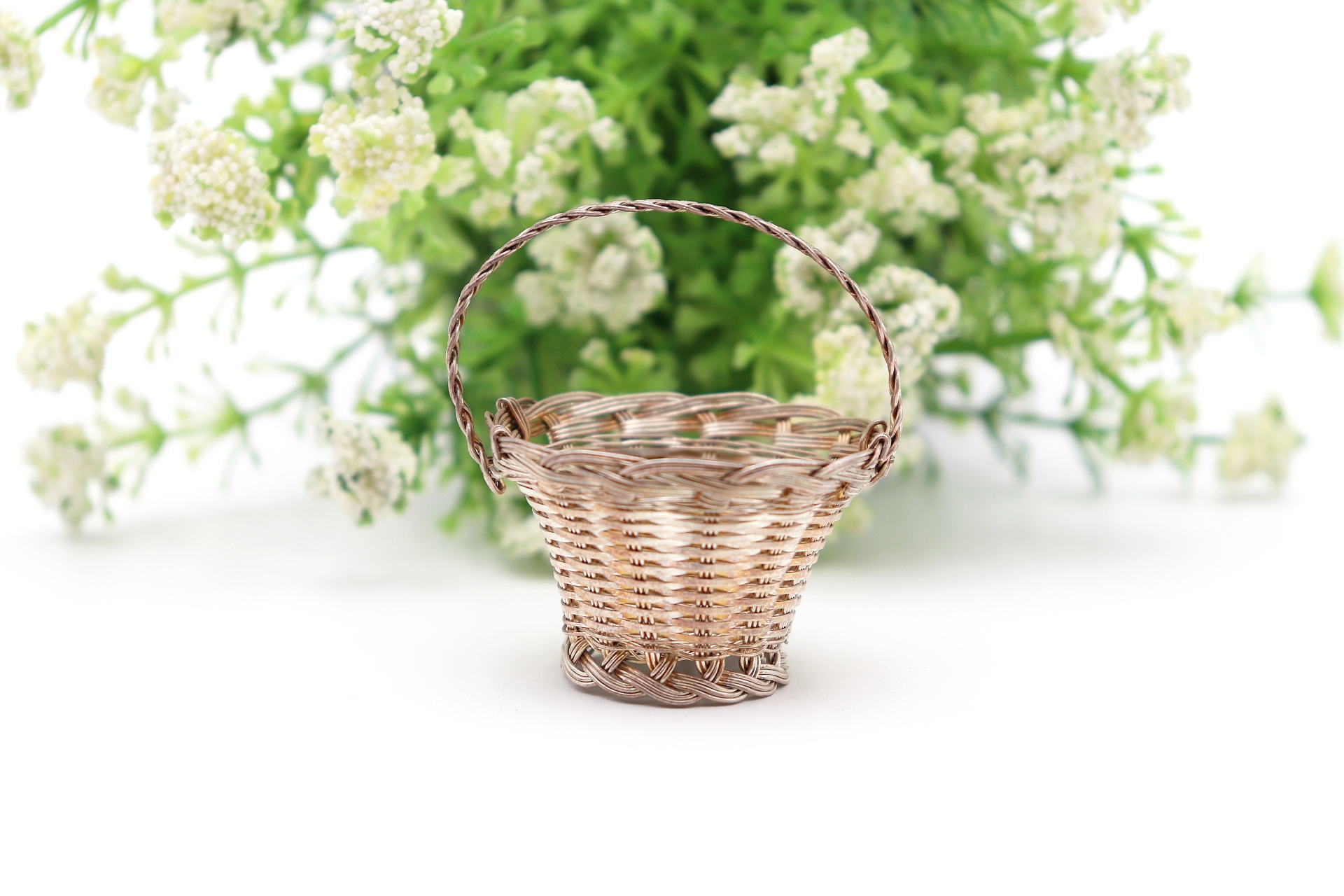 Miniatura de cesto em fio de prata com asa fixa