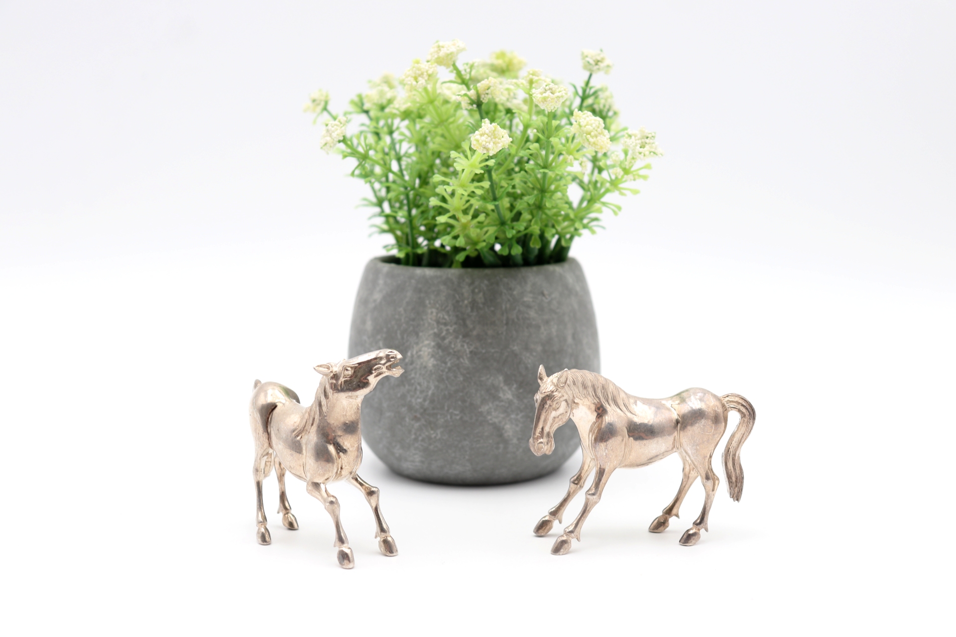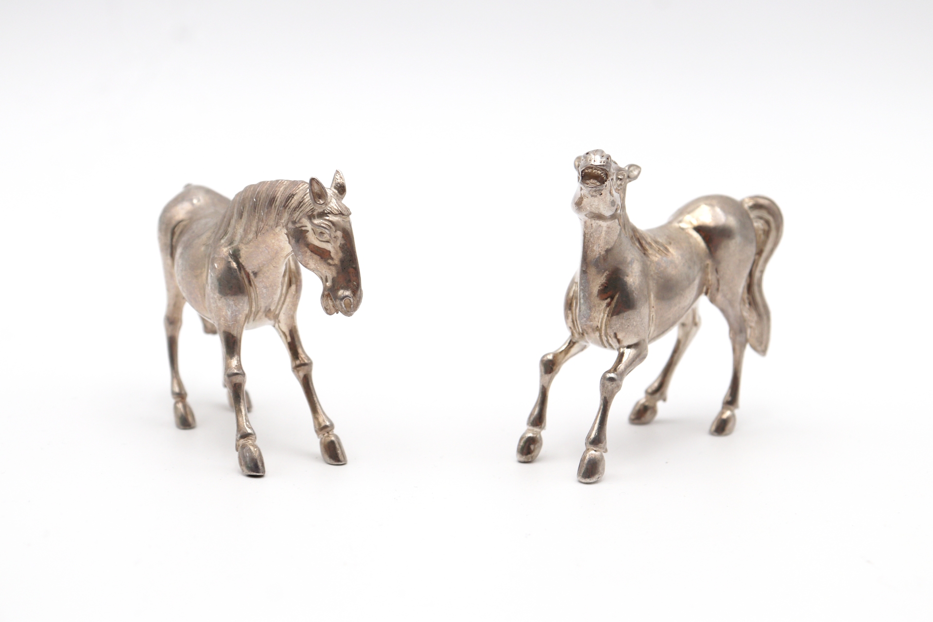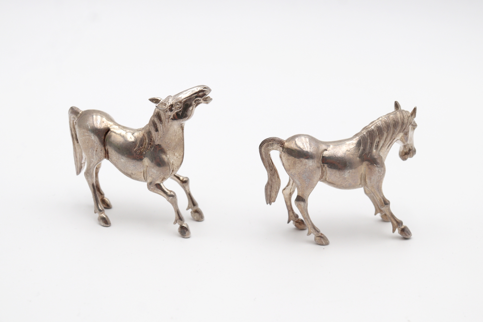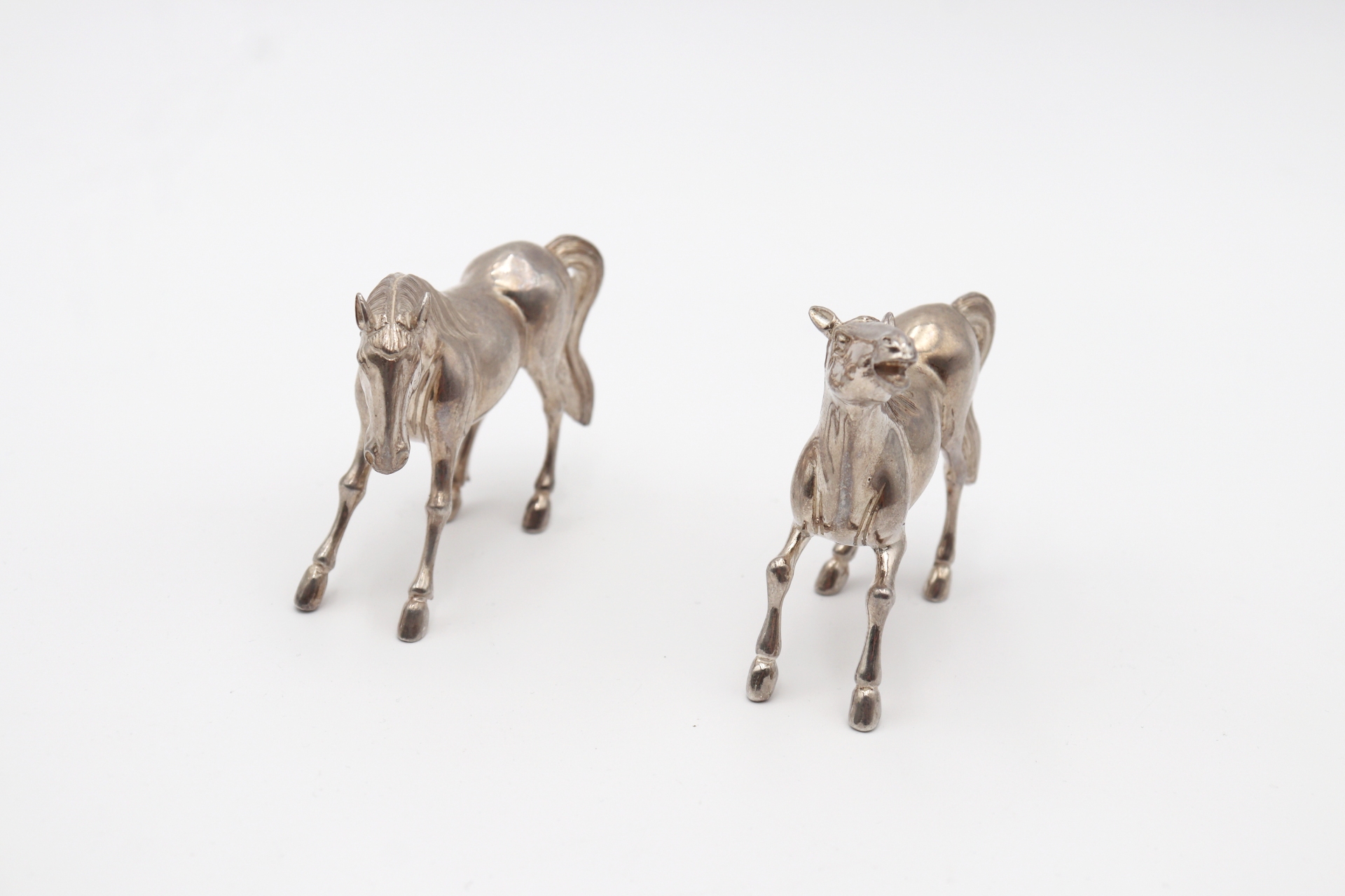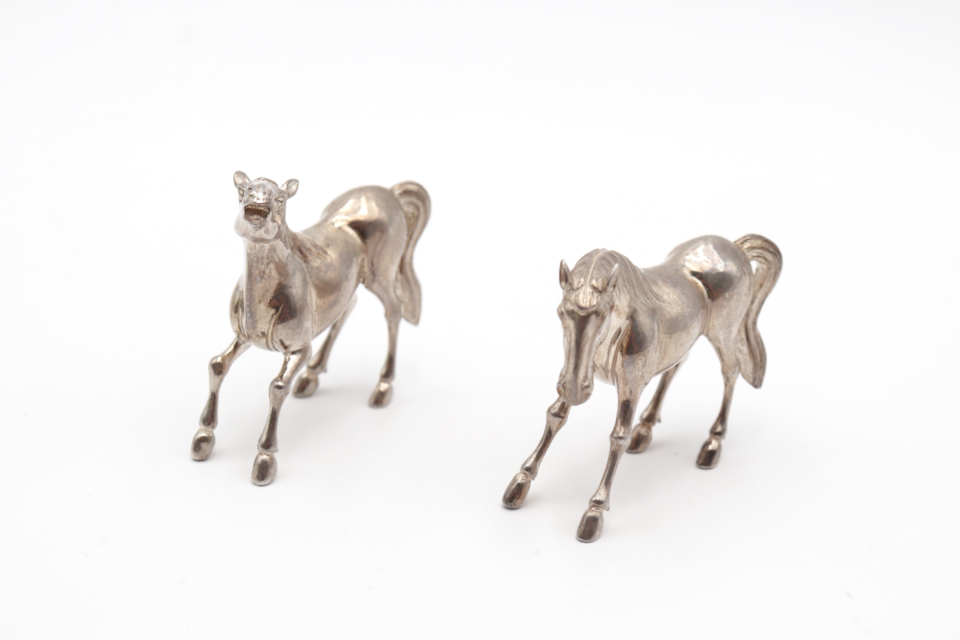 • Descrição: Miniatura de dois cavalos em prata em vulto perfeito.