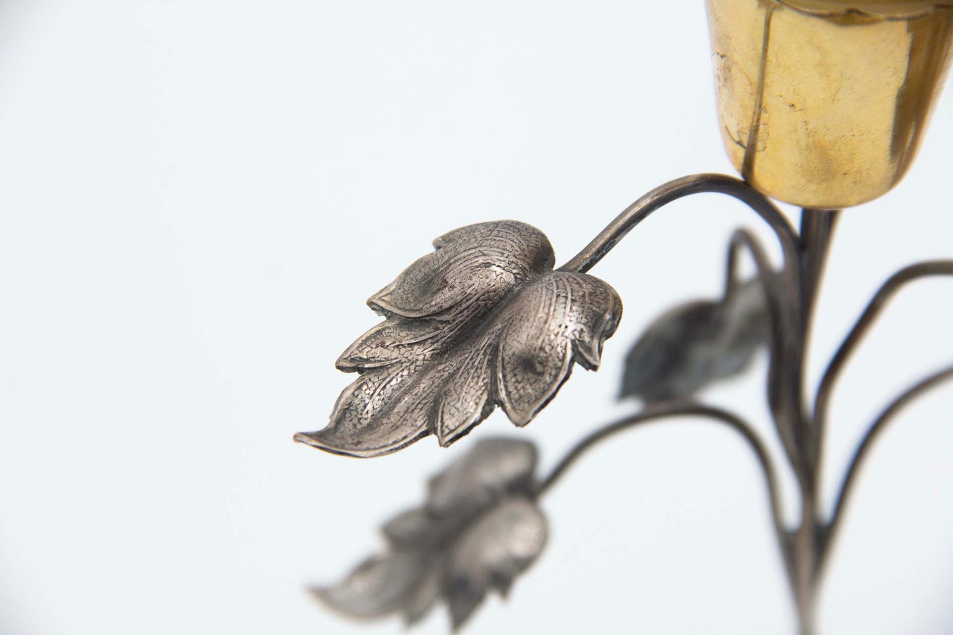 Paliteiro de prata com cálice dourado