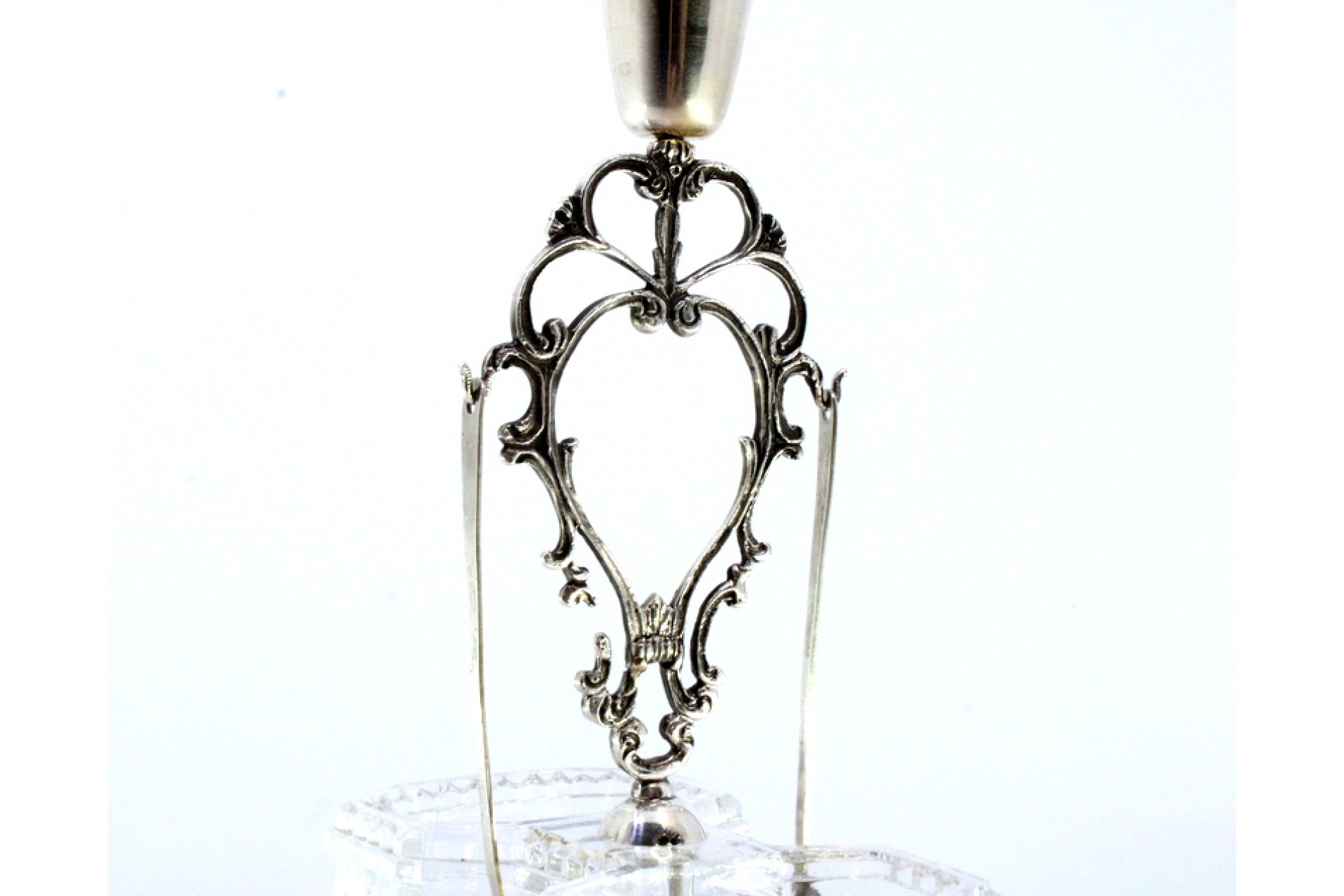 Paliteiro em prata com cálice suportado sobre aplicação recortada