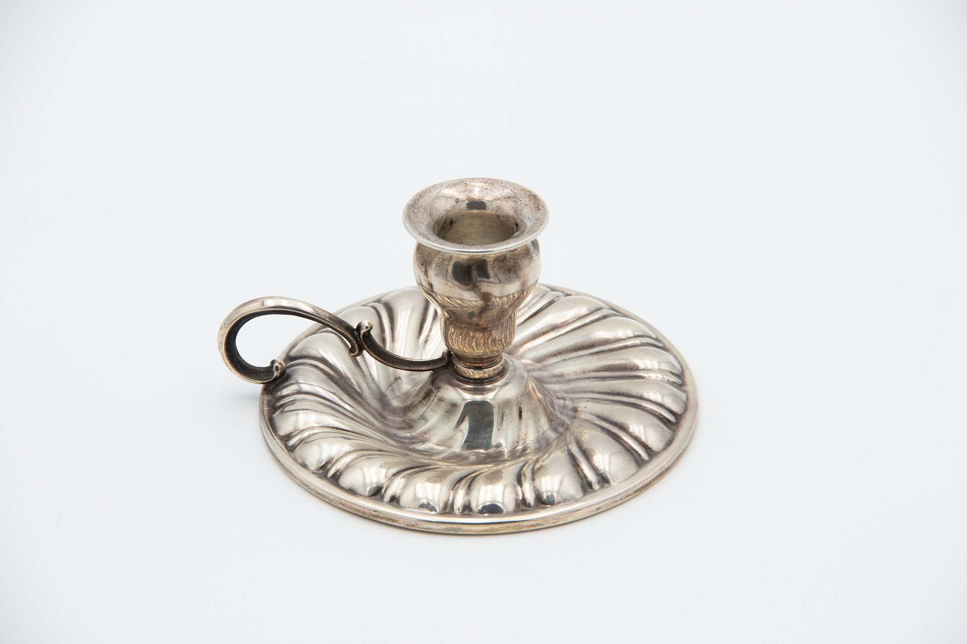 • Descrição: Palmatória de prata gomada de forma espiralada com asa fixa.