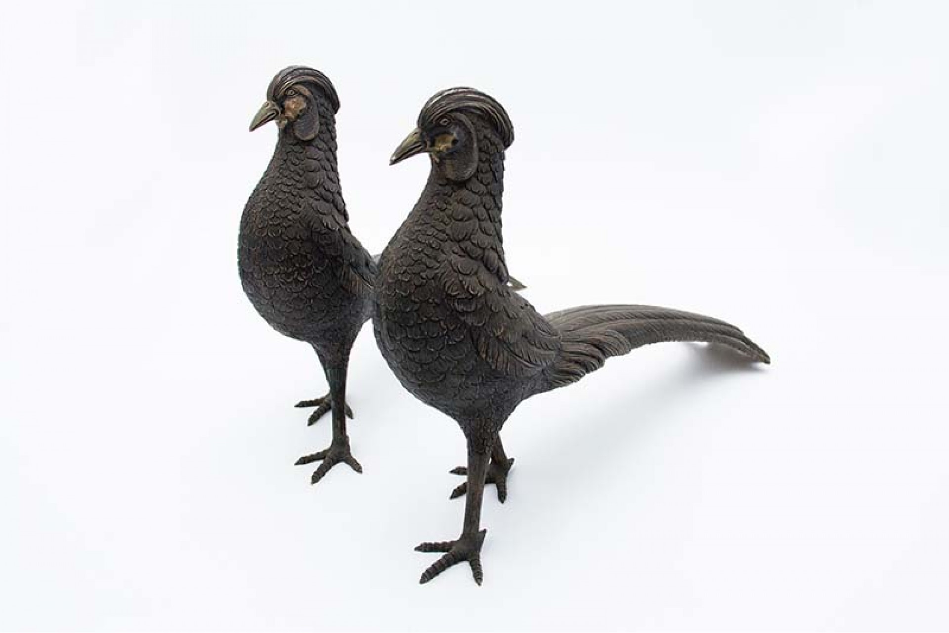 Par de faisões em prata cinzelada de caudas longas