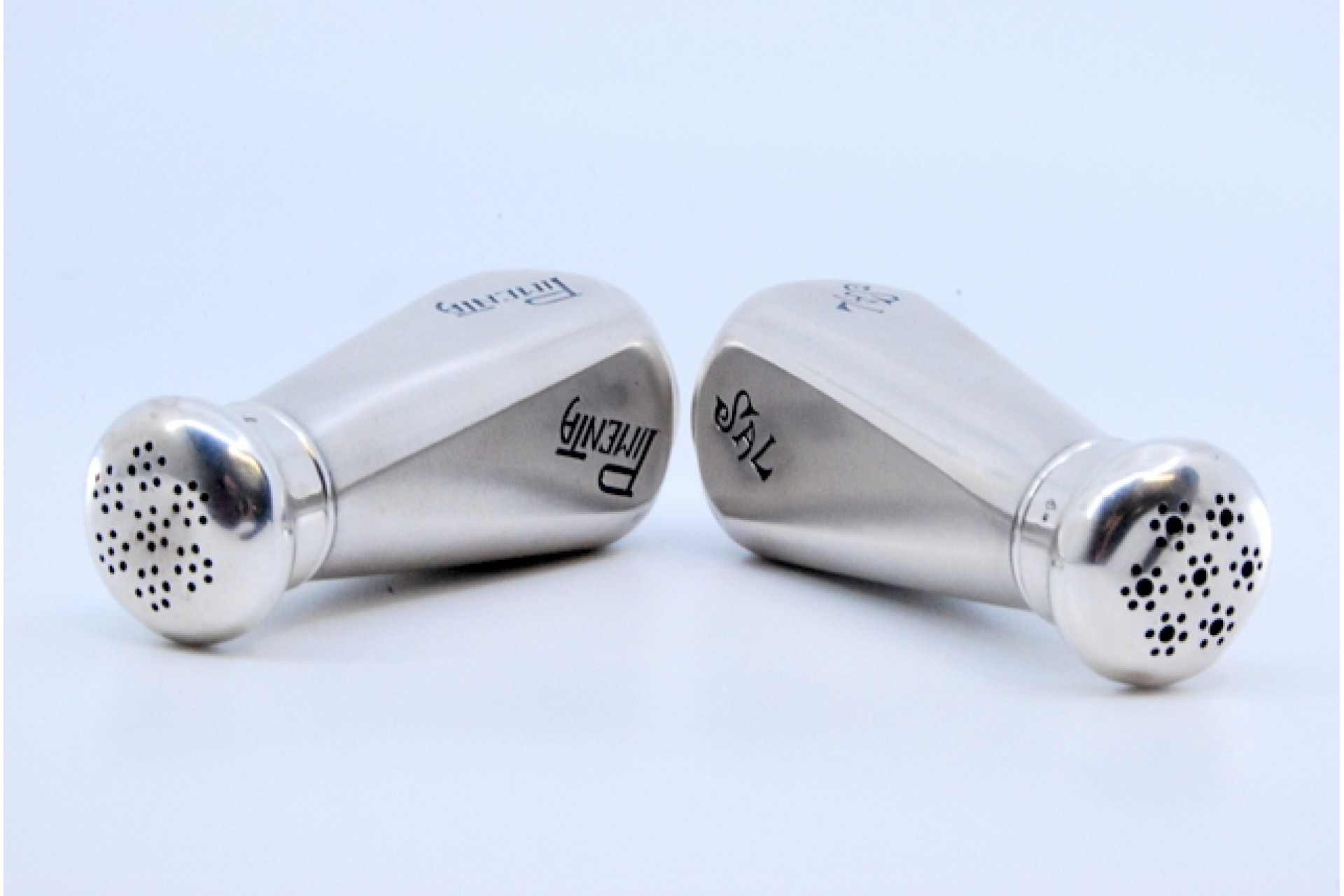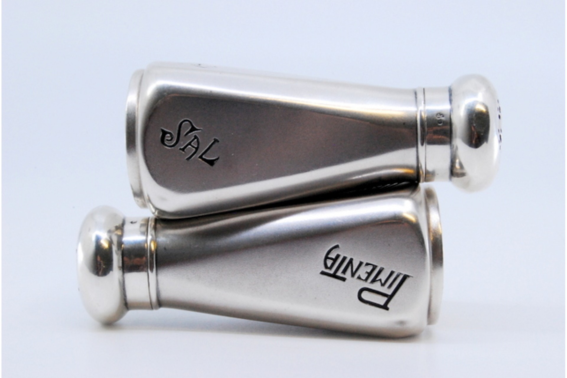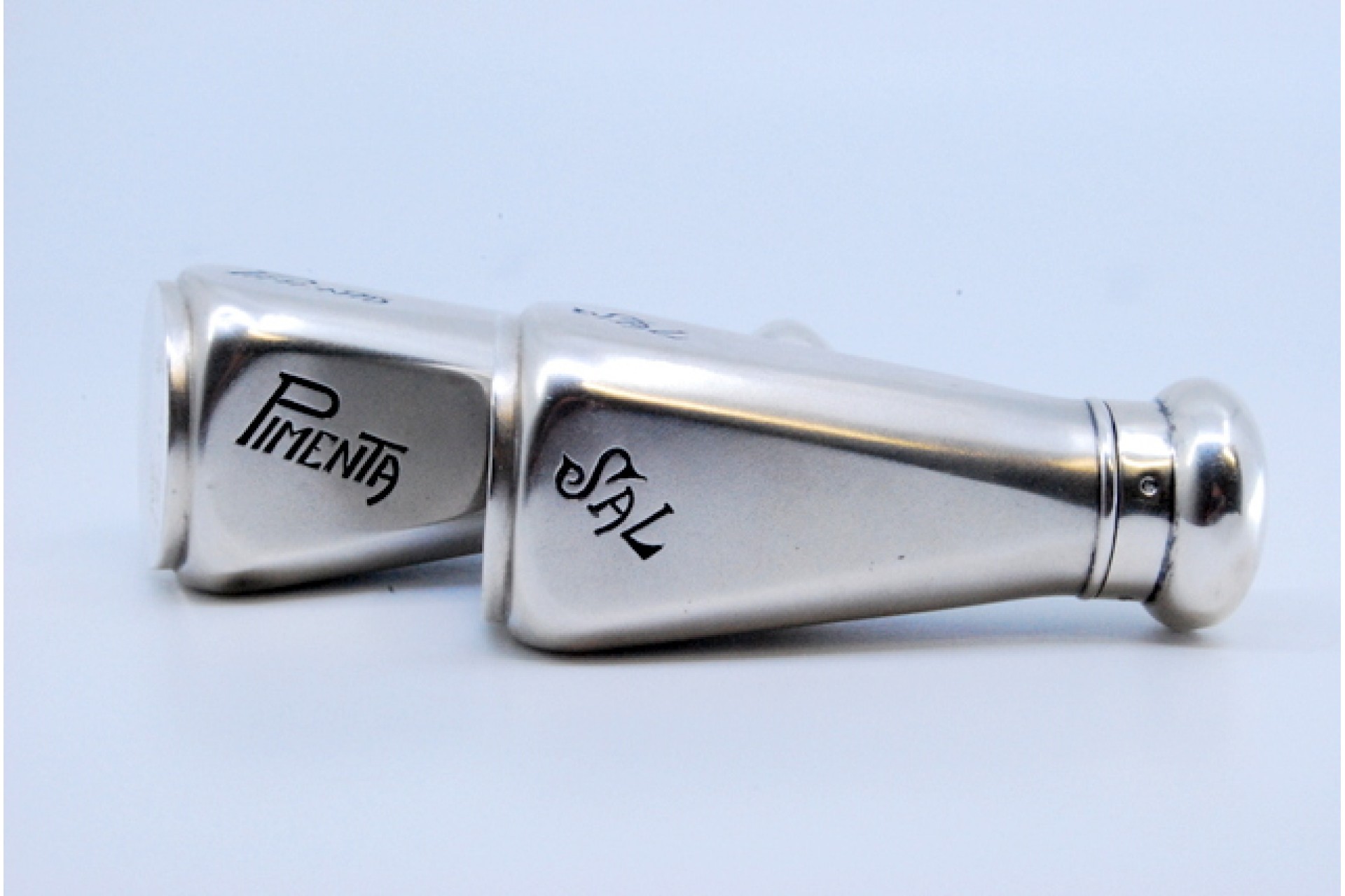 • Descrição: Saleiro e pimenteiro em prata lisa.