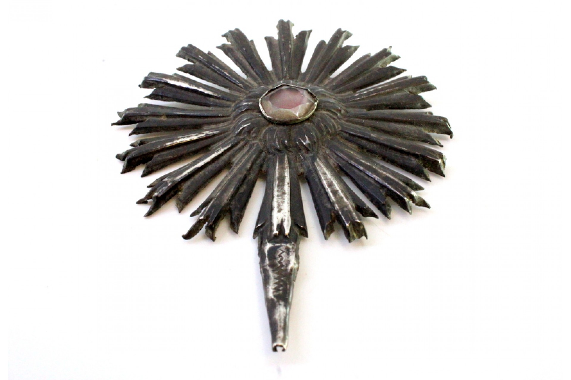 • Descrição: Resplendor em prata revelada com pedra vermelha falsa ao centro.