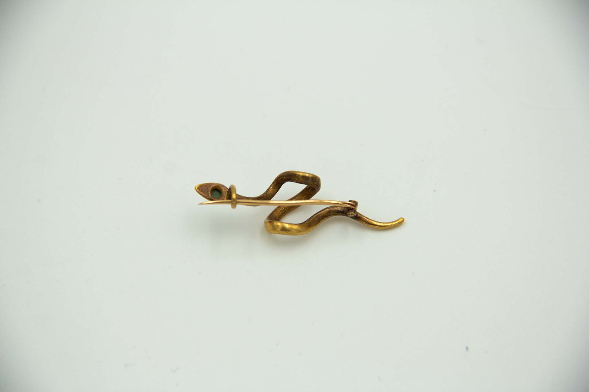 • Descrição: Pregadeira de ouro em forma de serpente com aplicação de turqueza.