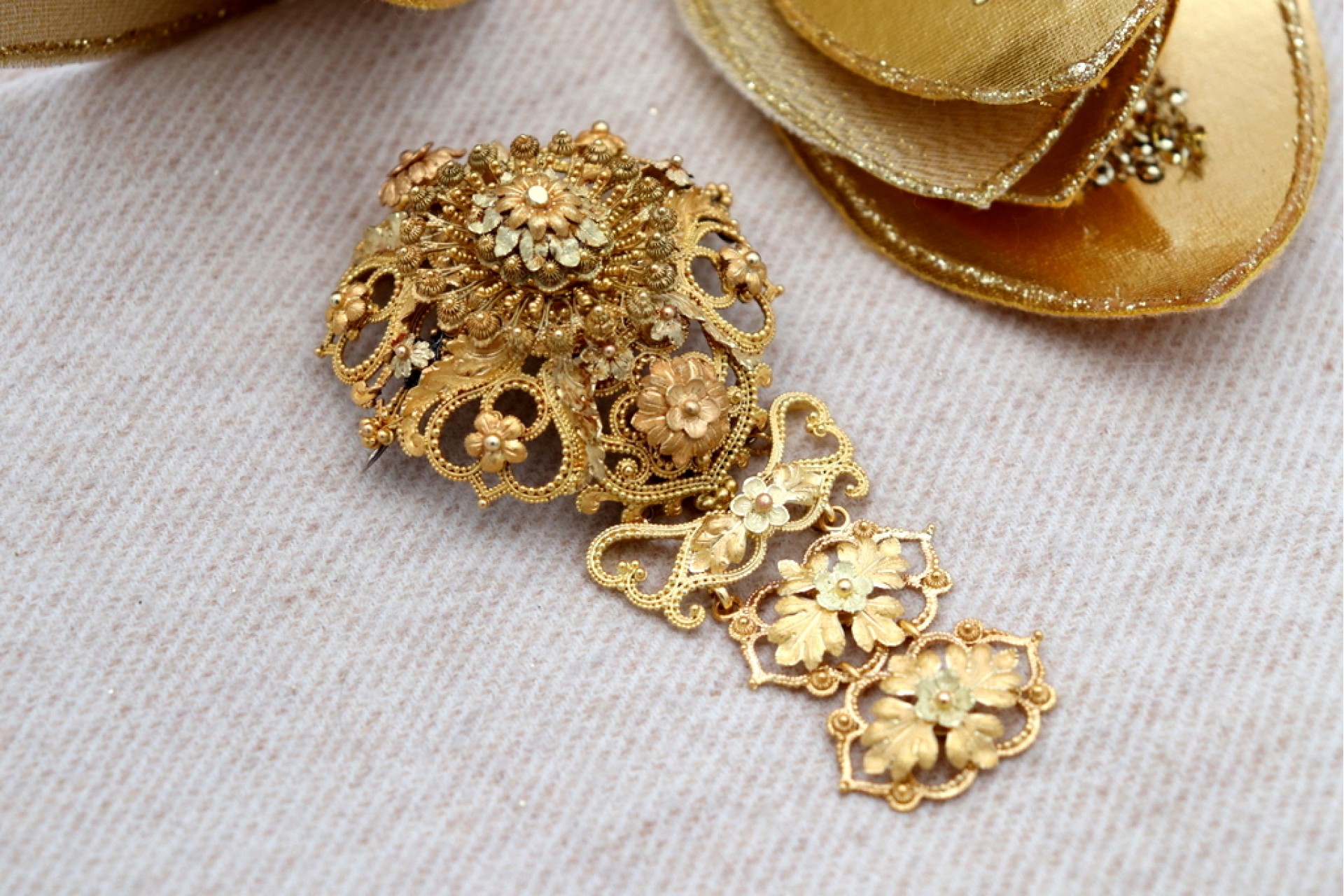 Etiquetas: Pregadeira, Ouro, Filigrana, Perlado